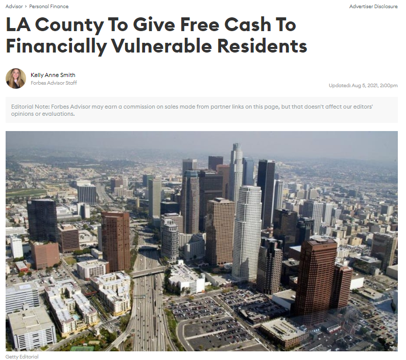 洛杉矶县的保证收入计划在7月下旬得到了洛杉矶县监事会的一致批准。
