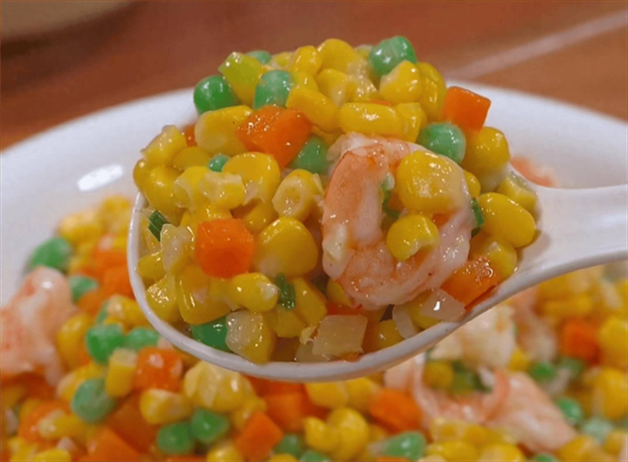 1. 准备食材:虾仁洗净,去掉虾线;玉米粒洗净备用;青椒和红椒去籽切丁;大蒜切末。 2. 腌制虾仁:将虾仁放入碗中,加入料酒、生抽和少许盐,拌匀后腌制10分钟。 3. 炒虾仁:锅中倒入适量的食用油,烧至五成热时,放入腌制好的虾仁翻炒至变色捞出备用。 4. 炒蔬菜:锅中留底油,放入大蒜末炒香,然后加入玉米粒、青椒丁和红椒丁翻炒至断生。 5. 合炒:将炒好的虾仁重新倒入锅中,加入适量的盐和白糖调味,快速翻炒均匀使所有食材充分融合即可出锅装盘。