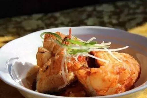 4、烧汁糯香鲜鱿鱼 1.糯米用温水泡约5小时(隔夜最好),拌入少许香芋粒,加盐调味备用。 2.鱿鱼剥皮,洗干净,酿入糯米香芋,大火蒸30分钟。 3.蒸好的鱿鱼取出,放入八成油锅中过一下油,使表皮香脆上色。 4.鱿鱼炸好后装盘,淋上烧汁,用番茄(可稍微煎一下)、青柠、芒叶等稍作点缀即可(需配刀叉上菜)。 5、烧汁鲈鱼 1.将调味料熬制成调配烧汁; 2.鲈鱼斩件用柠檬水浸泡后吸干腌入味; 3.将鱼炸透至酥脆; 4.用熬好的调配烧汁将鱼浸泡入味装盘即可。