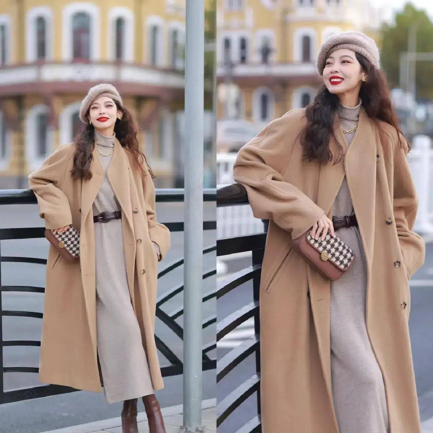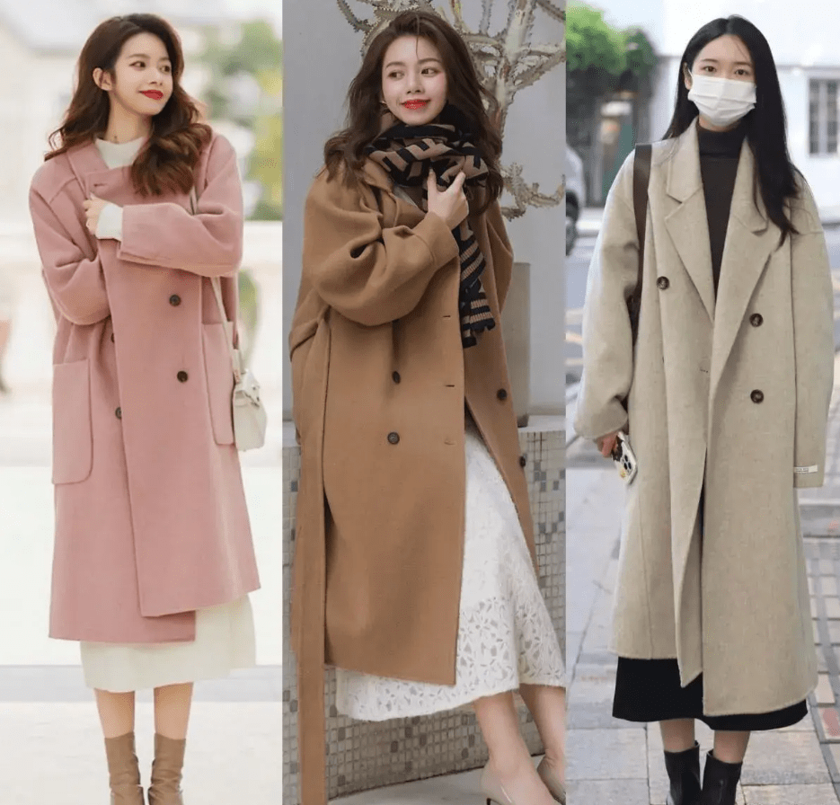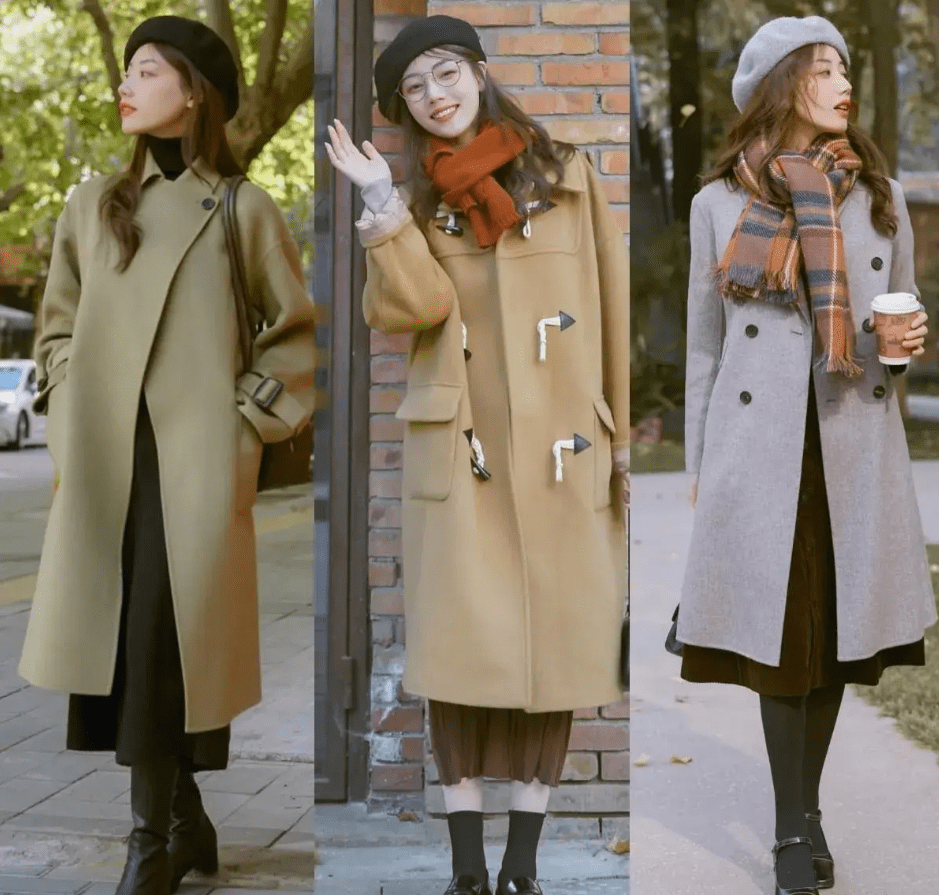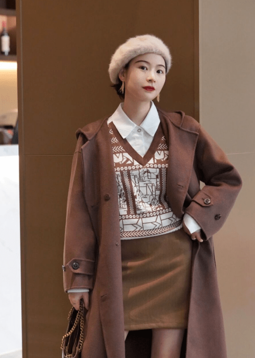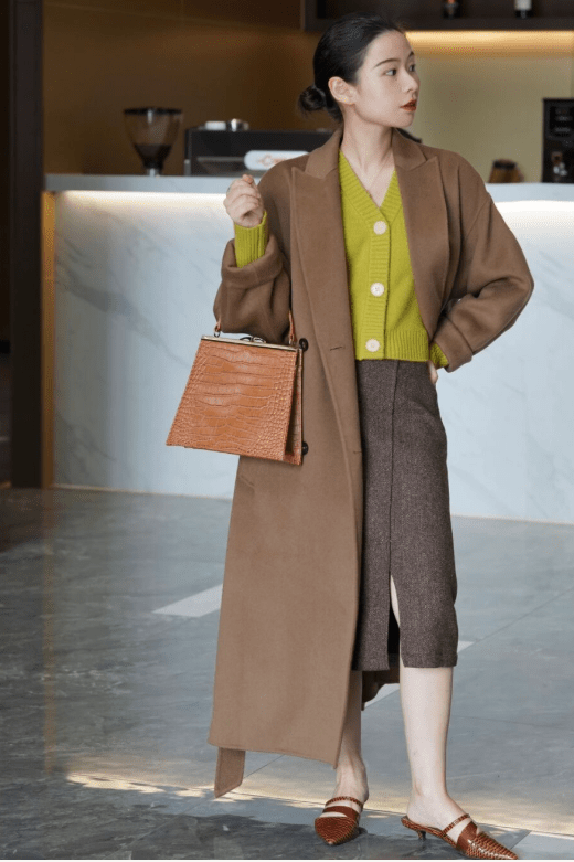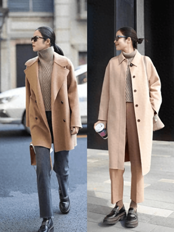 温暖中性色系:毛呢大衣叠穿时,选择温暖的中性色系,如米色、卡其色或浅灰色。这些色彩既能营造高级感,又能与其他服饰进行相互搭配,增加整体造型的和谐度。