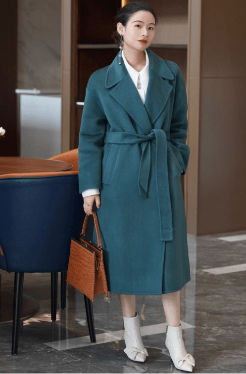 ②. 高跟靴或长靴:搭配一双与毛呢大衣相协调的高跟靴或过膝长靴。这样的选择不仅增加了整体造型的时尚感,还能为腿部轮廓增添一份修长感。