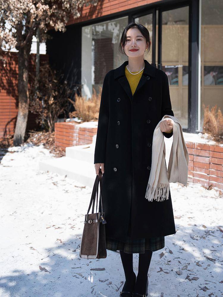 对于追求高贵优雅的女性来说,经典款式的大衣与裙子是不可或缺的组合。选择一款经典的长款大衣,如黑色或灰色的羊毛混纺面料,搭配上一条适中长度的裙子,如及膝的A字裙或修身的铅笔裙,能够给人一种优雅、气质的感觉。
