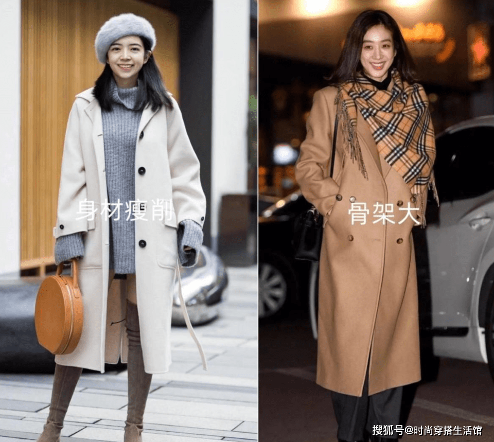 肩膀窄、身板比较瘦削的女生,建议穿直筒H型的大衣为佳,比较修长的衣型就可以穿的更显线条,同时建议搭配着浅色去穿着,就能改善瘦削感;