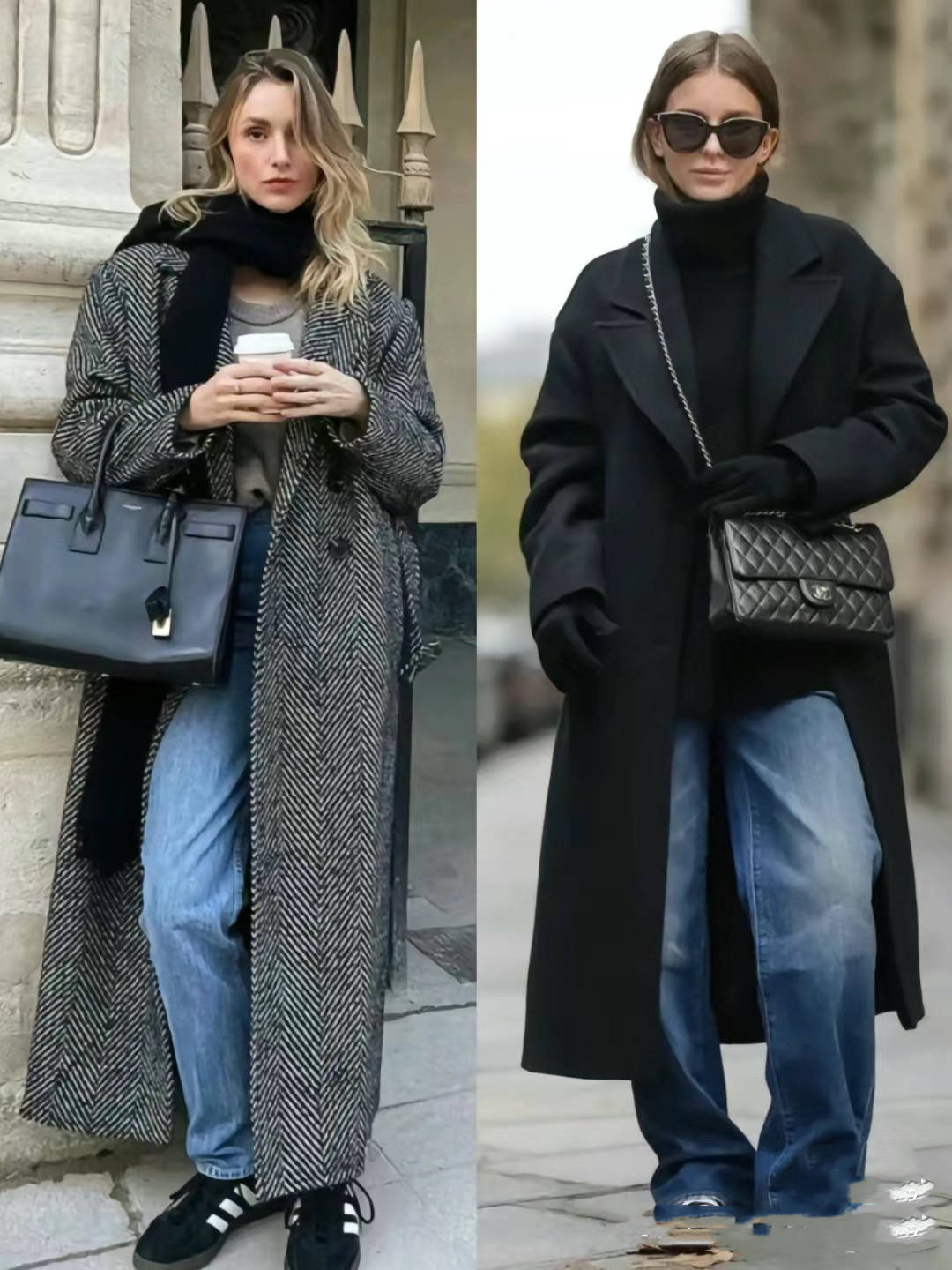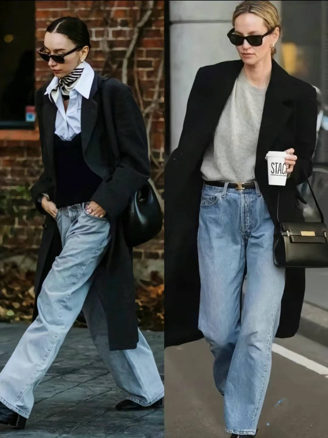 大衣的款式、色彩、细节,都可以呈现出更多样的变化。我们在选择牛仔裤的时候,也可以搭配不同的裤型。或是利落的直筒裤,或是精致的小脚裤,或是随性的阔腿裤,都可以自由组合。