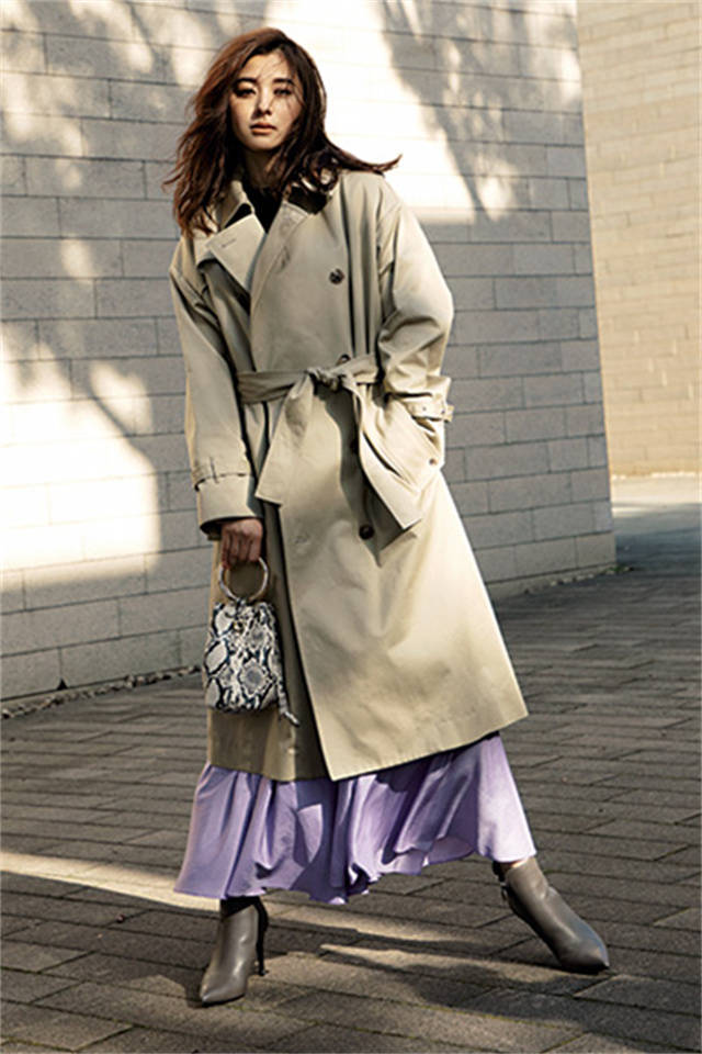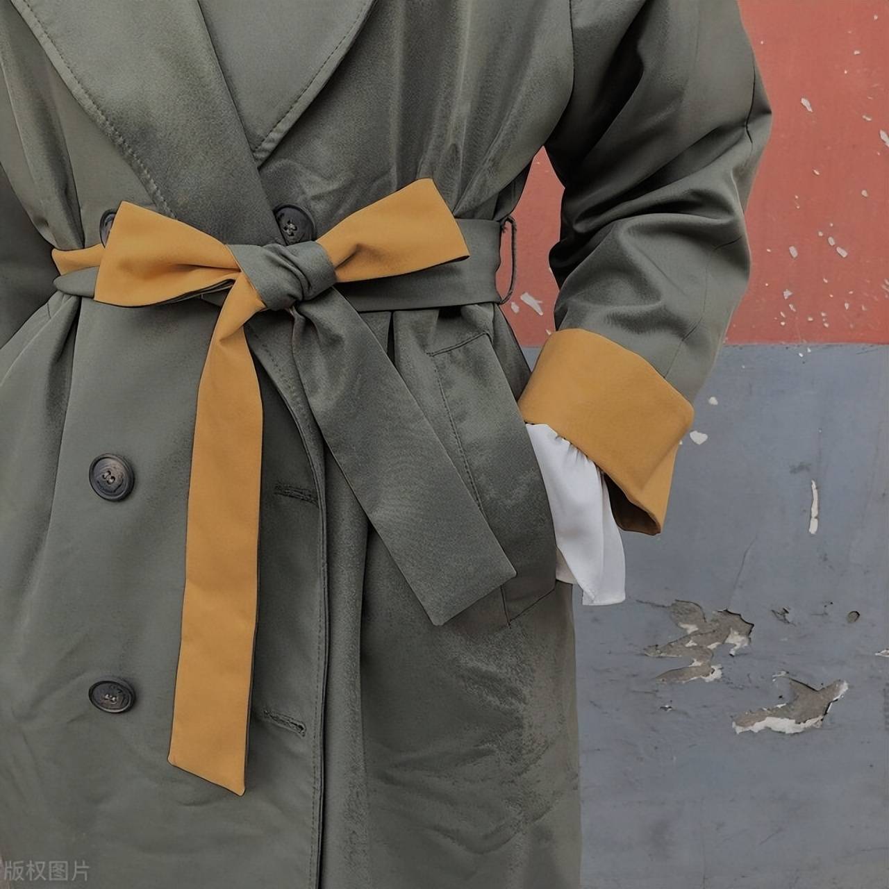 在流行潮流中,前襟的双尾结成为了一个非常受欢迎的设计,因为它不仅难以解开,还能够提升款式的档次。这种结合简约和时尚的设计,让基本款风衣变得更加摩登而休闲。除了结的设计,配饰也是至关重要的。可以选择一些引人注目的配饰来点缀,如时尚的别针或别致的纽扣等等,这样可以为风衣增添一些独特的个性和魅力。
