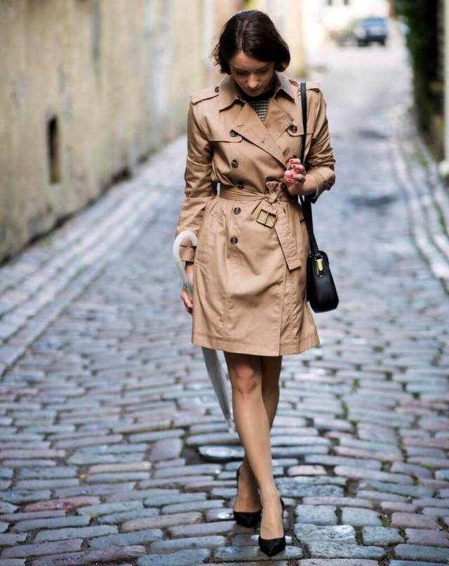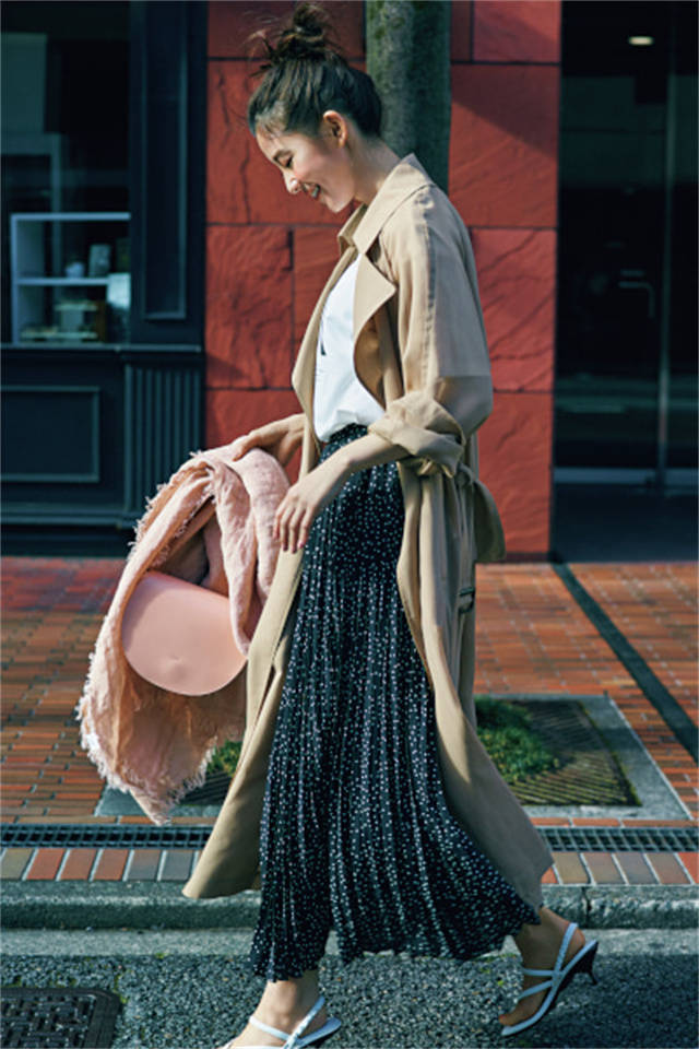 风衣款式,背后系有腰带,充满了摩登的味道。这款风衣适合在悠闲休闲时刻,加上点点图案的短裙,不仅能营造出休闲的感觉,同时也展现出你的成熟和可爱。