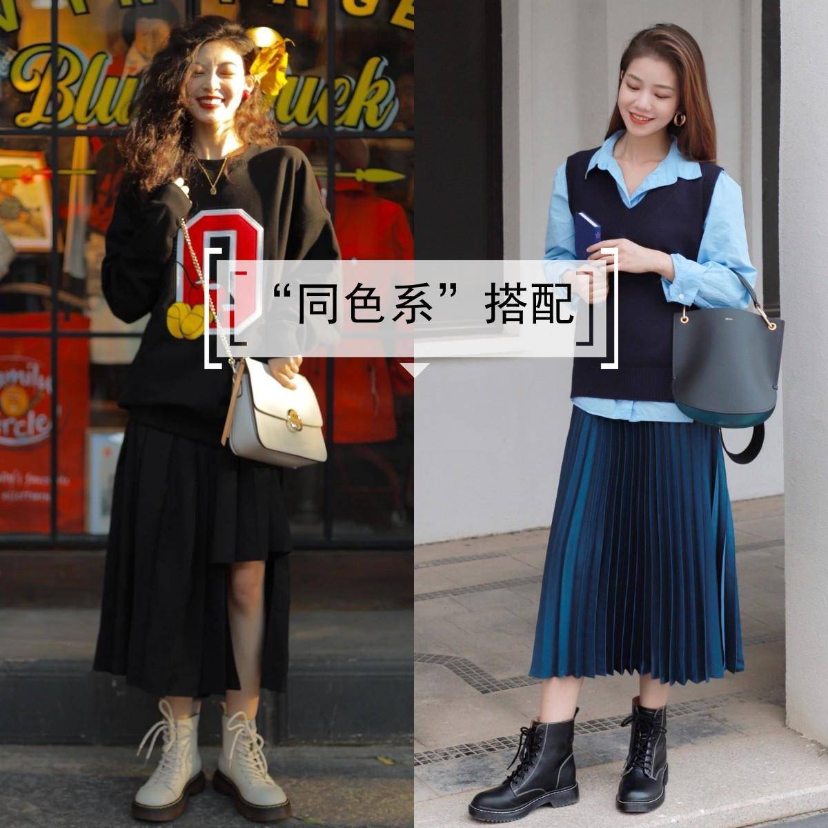 裙子和不一样的鞋子搭配,给人的既视感也是有所不同,看你自己比较喜欢什么风格的穿搭啦~