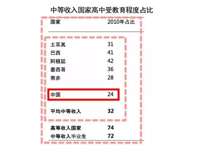 罗斯高为何与中国农村问题杠上了? 因为他发现中国作为世界第二大经济体,经济高速发展,却一直处于“中等收入陷阱”中,根本问题就出在中国农村受过高中以上教育占比太低 先来看看罗斯高在中国调研十年发现的一些惊人数据: 在北欧、加拿大、美国这些高等收入国家的劳动力 平均每4个人里就至少有3个高中毕业 而中等收入国家,平均每3个劳动力里 只有1个人是高中毕业 而中国的高中受教育程度是所有中等收入国家里面最低的 甚至比南非还低