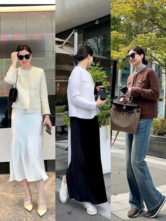 相较于那些花哨的设计,经典又简约的服装穿在身上会更利于提升品位。这些40岁的女人,穿着这种优雅的小香风,搭配着经典的牛仔裤,都是一些经典款,但却能够让最高级的气质展现出来。