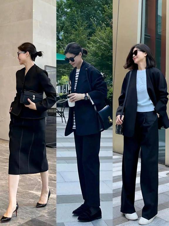 你可以去考虑这种套装穿搭,西装套装或者是小香风套装,知性优雅得体,黑色系套装也十分的显瘦呢。