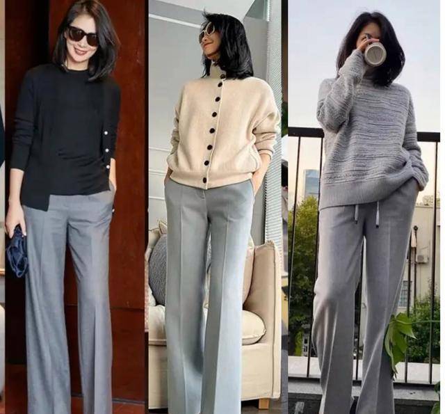 选择经典的基本颜色,打造更精致的外观 40岁以上的女孩穿配色时,不建议选择过于粉嫩的颜色。他会怀疑自己假装年轻,很容易穿得不好。最好选择经典的基本色,如黑、白、灰、蓝、驼色等。 选择浅灰色的毛衣外套,里面选择深灰色的毛衣,搭配浅灰色的阔腿裤。全身只选择一种颜色,但有深浅的变化。不仅给人一种层次感,而且高级感十足。这种颜色搭配比较适合成熟的人。女孩们既有吸引力又高贵。