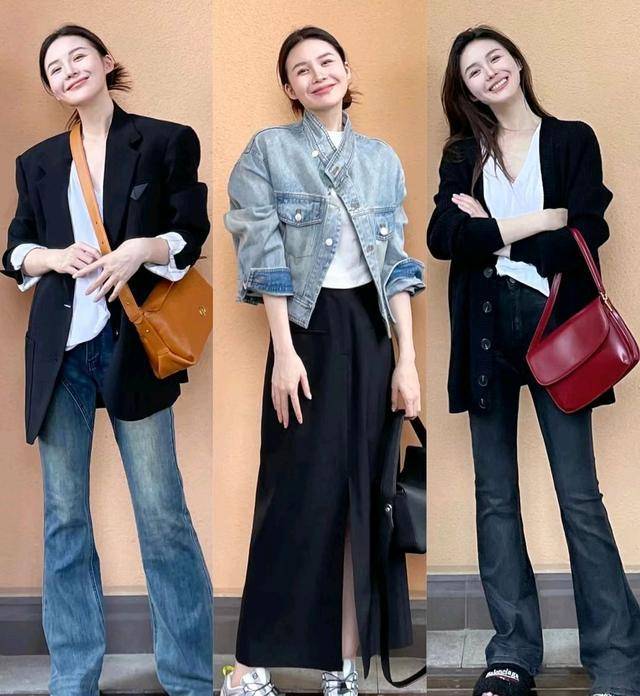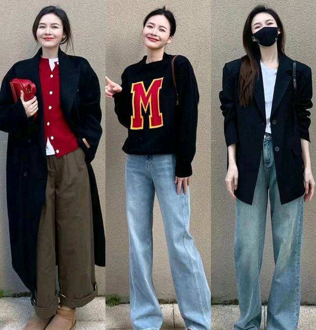 黑色大衣简单又优雅。如果想要看起来时尚又减龄,就选择浅蓝色牛仔裤搭配番茄红高领毛衣。选择对比色作为打底,会让黑色外套看起来更高级,不那么沉闷。时尚又引人注目。