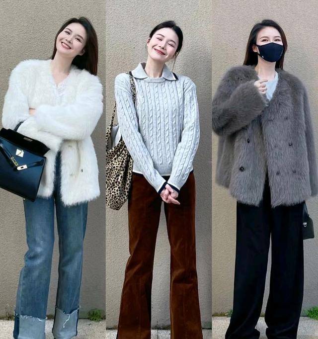 还有一种皮草,也是比较酷的单品。看上去毛茸茸的,有一种膨胀感。这个时候穿宽松的打底会让你看起来更胖。