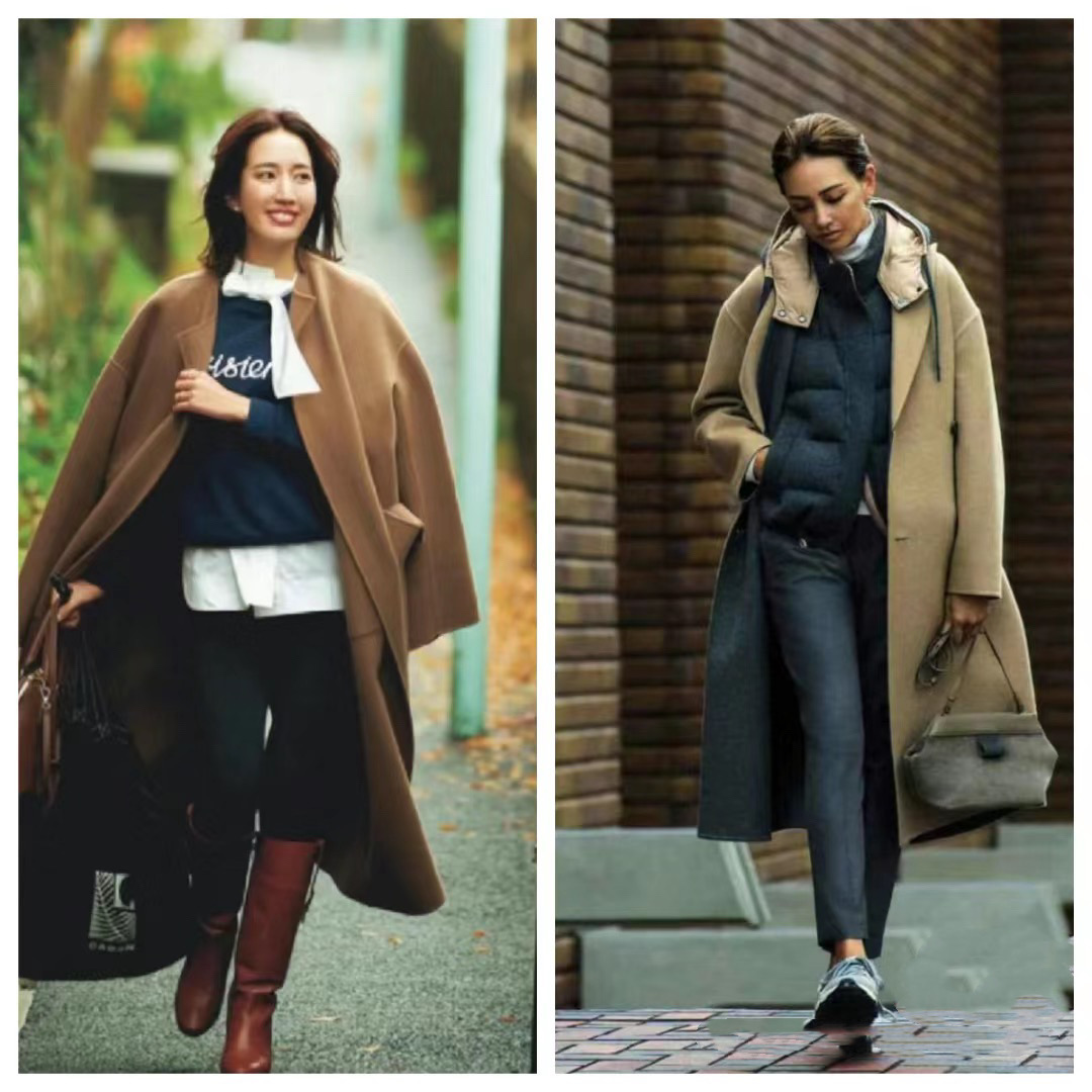 卡其色的大衣,或者棕色系的大衣,可以选择稍微宽松且比较挺阔的版型,优雅大方自带从容之美。内搭可以选择修身的小黑裤,也可以配直筒的牛仔裤,一点都不挑剔。