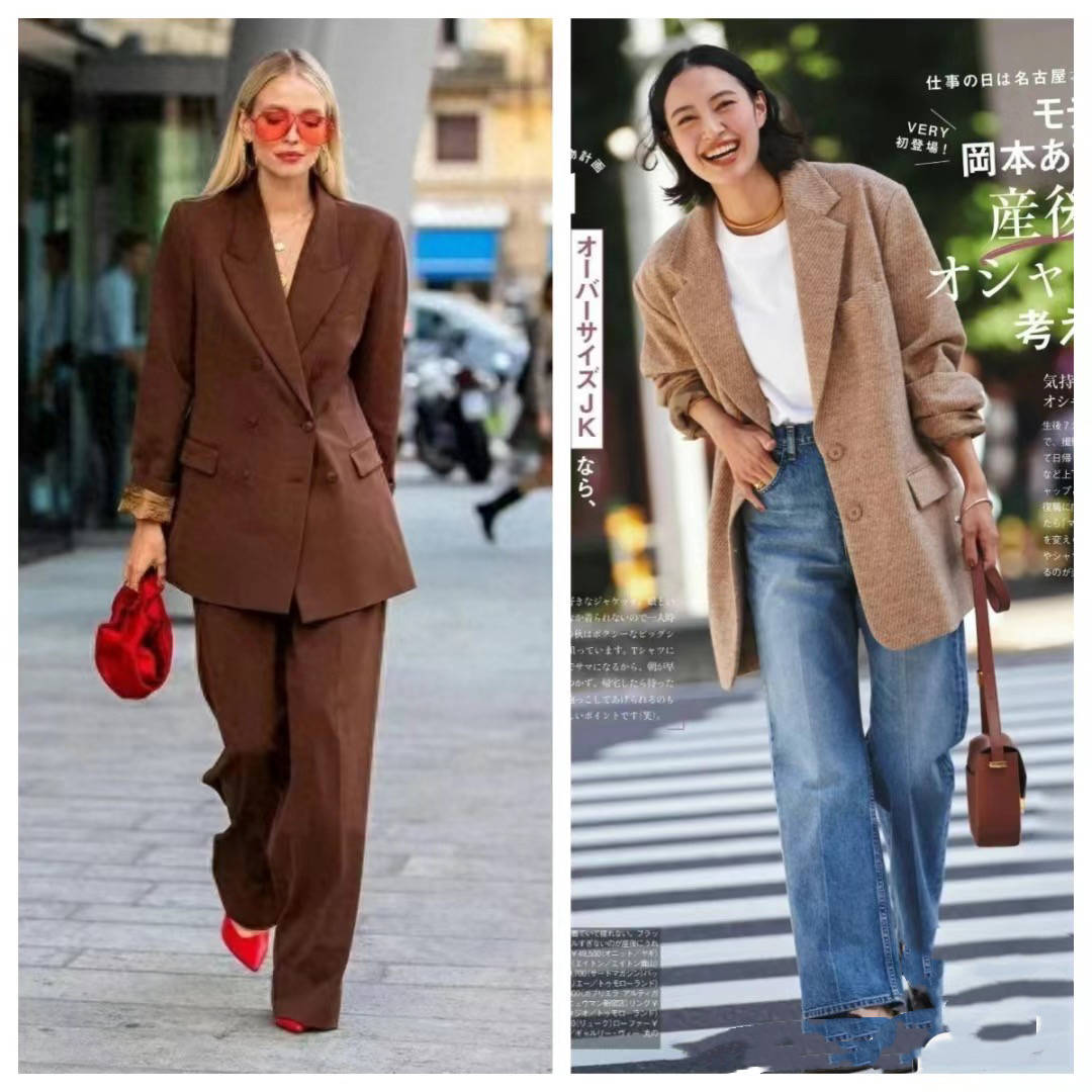 宽松的西服外套,穿起来特别的随性大方。想要秋冬季节的松弛感,西服外套可以尽量宽松一点,面料也可以选择羊绒、毛呢或者灯芯绒的材质。