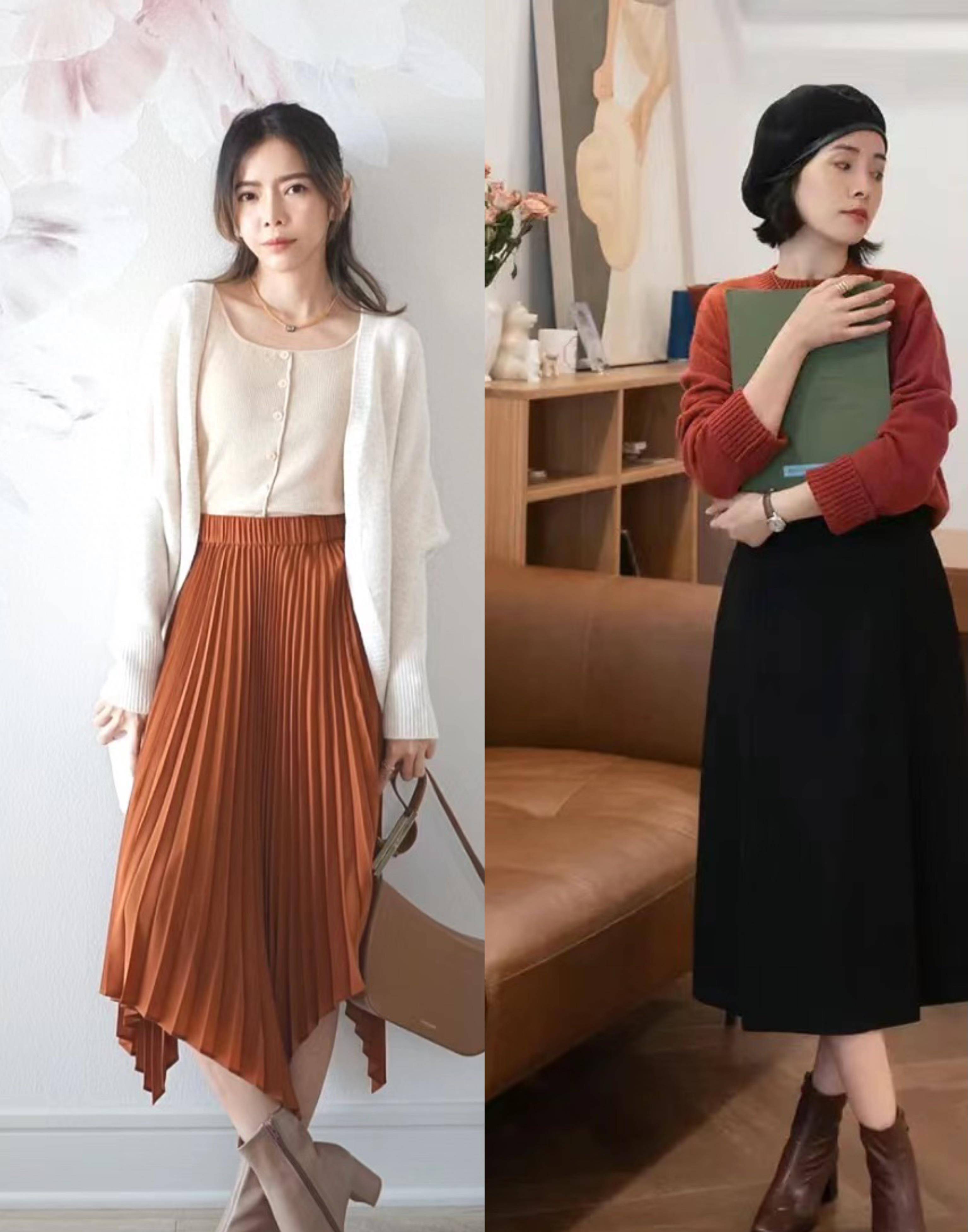裙子不只是夏天的专利,时尚女性一年四季都穿裙子。秋季裙子可以更厚更温暖,更舒适和复古,或者更优雅和精致。
