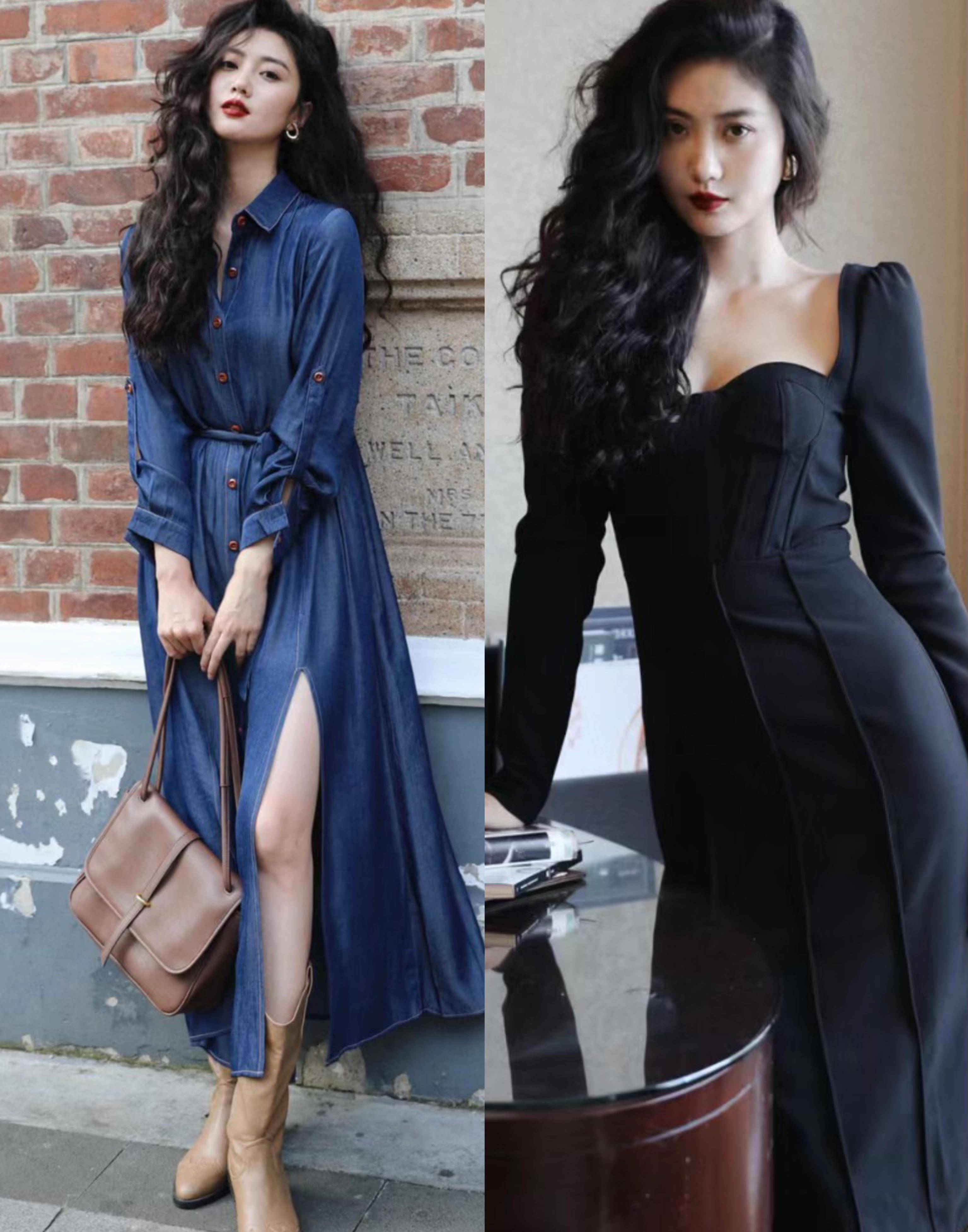 开叉长裙搭配短靴,自然拉长视觉比例。不仅风格无穷,更能展现时尚魅力。这种连衣裙,搭配复古的牛仔蓝颜色,显得特别精致,也是白色的。