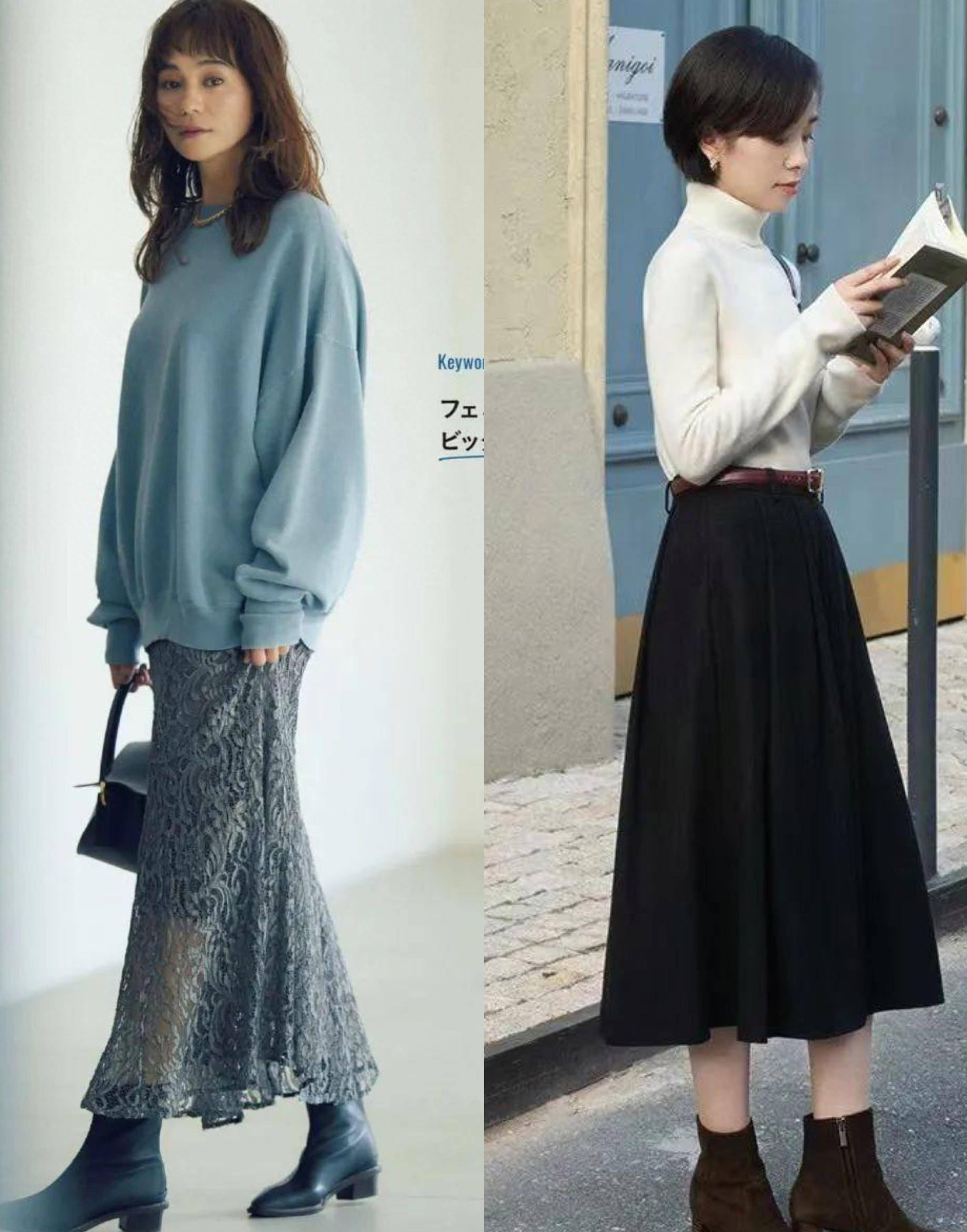 三四十岁的女性不应该总是穿着老式的衣服, 「秋裙+短靴」又凉又美!