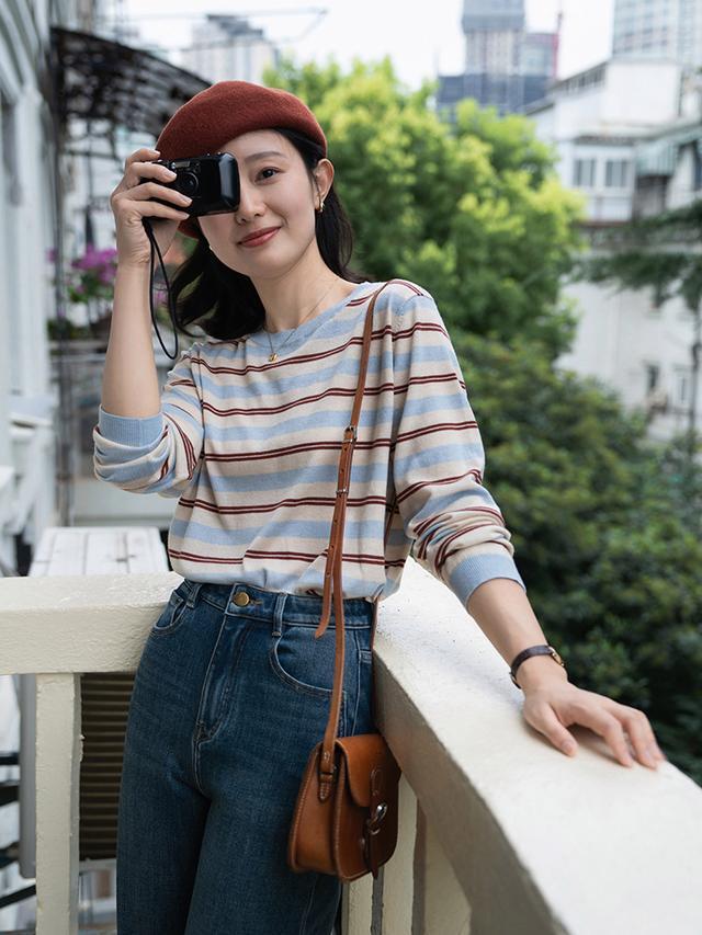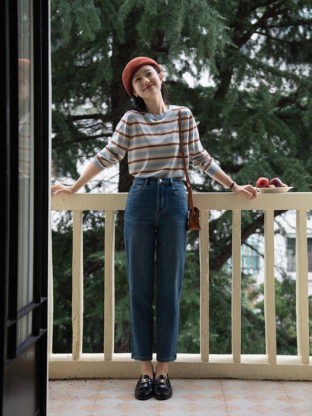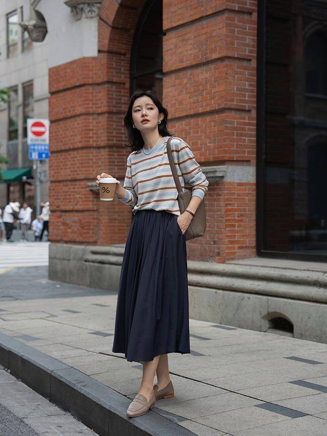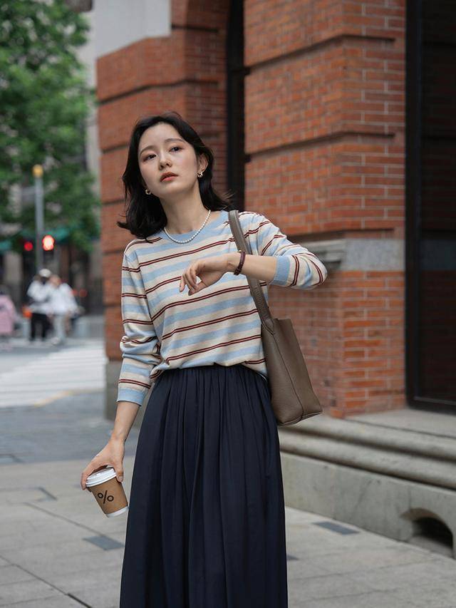 初秋时节,简约圆领条纹针织衫搭配牛仔裤和半身裙,是展现优雅日系风格的绝佳选择。这种搭配不仅遮肉显瘦,还能让你轻松应对各种场合,散发迷人的魅力。