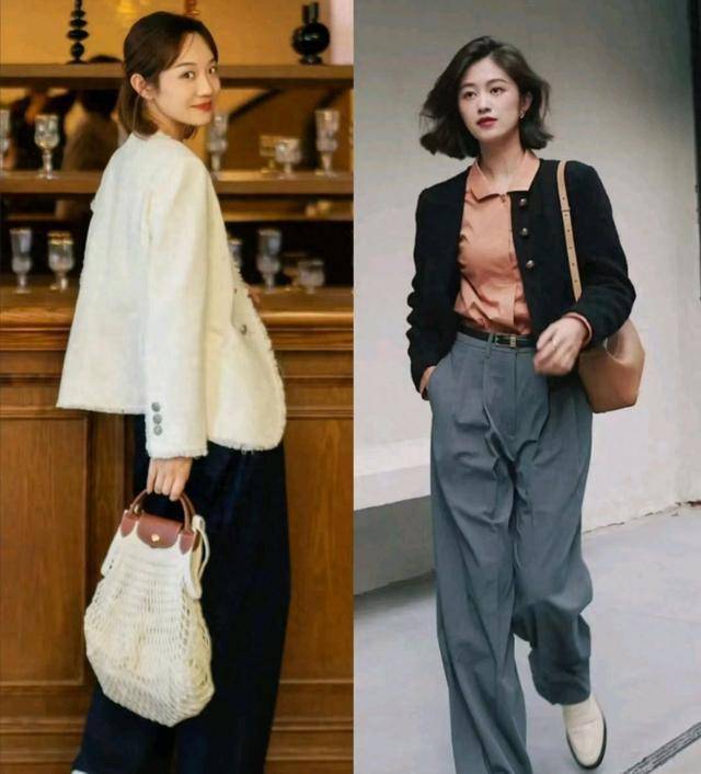 秋冬法式粗花呢小香外套,挑选出一深一浅的两个色系,藏蓝色与众不同,彰显高级和贵气感,搭配本期的卡其色拖地裤,带有一丝飒爽,通勤穿一定很出挑;米白色温润优雅,将人衬得柔和又有气质,可刚可柔,由秋穿至冬,性价比高,值得入手。