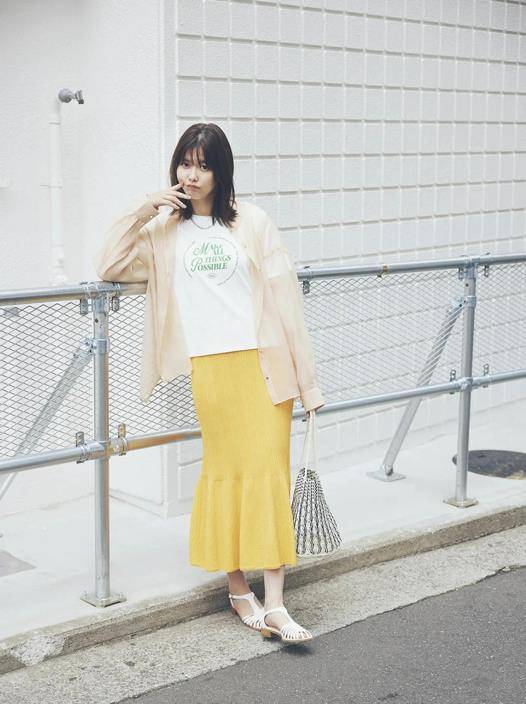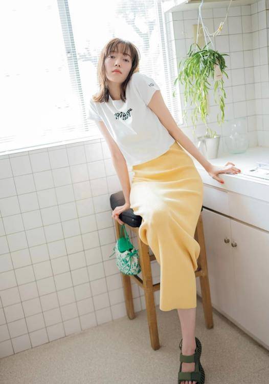 T恤不要那么幼稚和随意,应该与表现稳定的纹理元素相结合。百褶裙值得考虑。百褶裙的层次感百褶感让平淡的穿搭有了3D感。当然,T恤穿的时候应该把边角塞进去,避免太宽造成视觉上的凸起和肥胖。