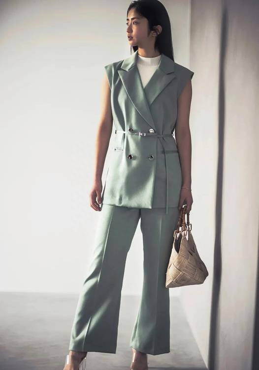 西装和马甲的搭配主要注重的是大女人的气场和个人的利落。不要穿一件背心,里面有无袖背心。可以消除背心的单调感,让矮瘦的女性撑起西装背心的宽幅。下半身搭配一条微辣的西装裤,会让你的腿显得比普通西装裤长一百倍。重点是不要破坏西装的高级感和干净感,降低正式感。