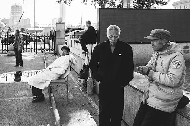 上图左侧高光与右侧阴影中的人物亮度差很大,为表现右数第二个老人的面部,先对深色衣服测光,然后按下曝光锁定按钮,重新构图拍摄。