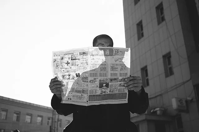 如上图,看报的人脸部和报纸处于强烈的逆光下,为了正确表现人物面部和报纸,需要先对深色衣服测光,然后锁定曝光重新构图拍摄。