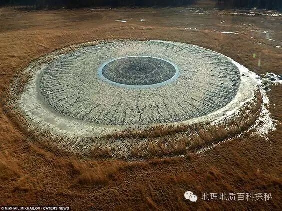 摄影师乘坐飞机飞跃俄俄罗斯东部时,看到地上放佛有一颗巨大的眼睛在盯着他,原来这是普加切夫斯基泥火山( Pugachevskiy mud volcano)。