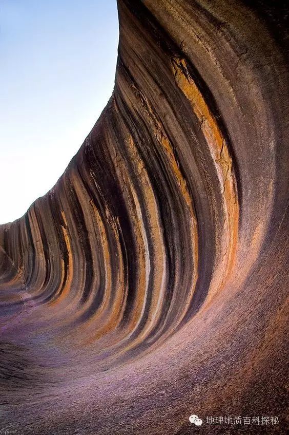 澳大利亚西部的波浪岩。由于它像高高的海浪因而得名,露出地面的部分占地几公顷,“浪潮”的部分岩石高约15米,长约110米。