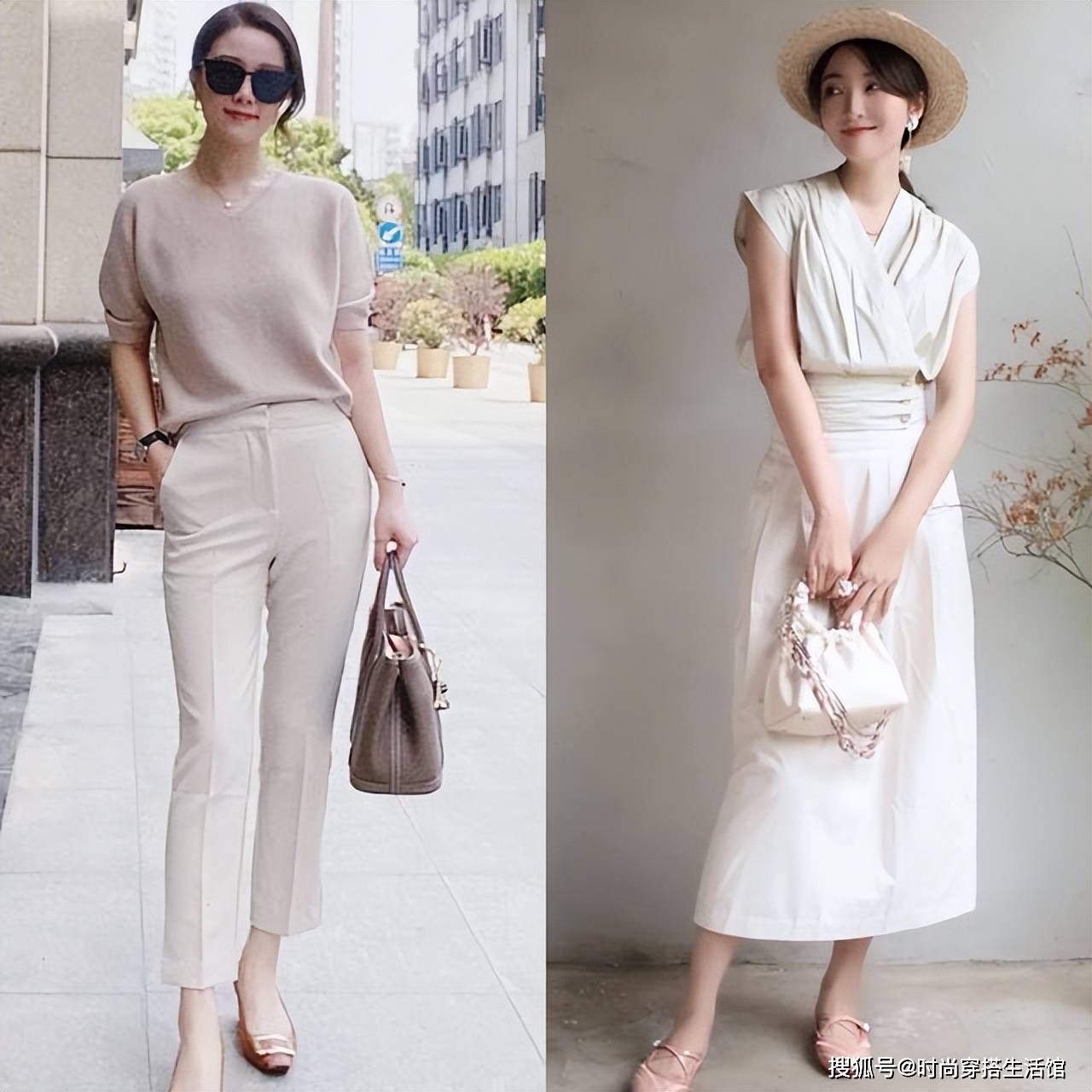 白色虽然也是基础色,但其实是有一定亮度的,因此黄皮的人穿还是避免不了显黑的风险,反而是米色更推荐大家选择,米色就是白色里加入了黄色调,偏向暖色调,观感柔和,可以利用米色的服饰来打造知性温柔的风格造型。