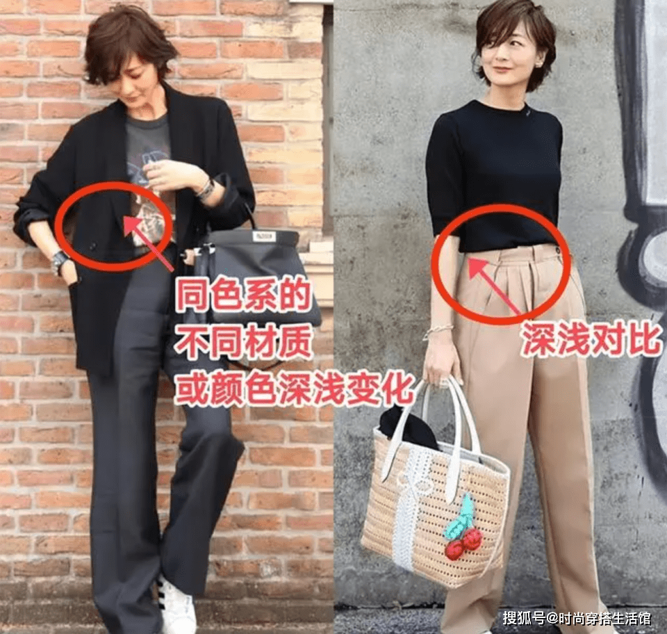 很多成熟女性们都非常简单的同色系搭配,基础的同色系搭配可以保证色彩搭配上的和谐感,尤其是对于稍微年长一些的成熟女性们来讲,在日常出街搭配中上身率最高的一种色彩搭配方式就是同色系搭配了,简单和谐又非常百搭,实用性非常强。