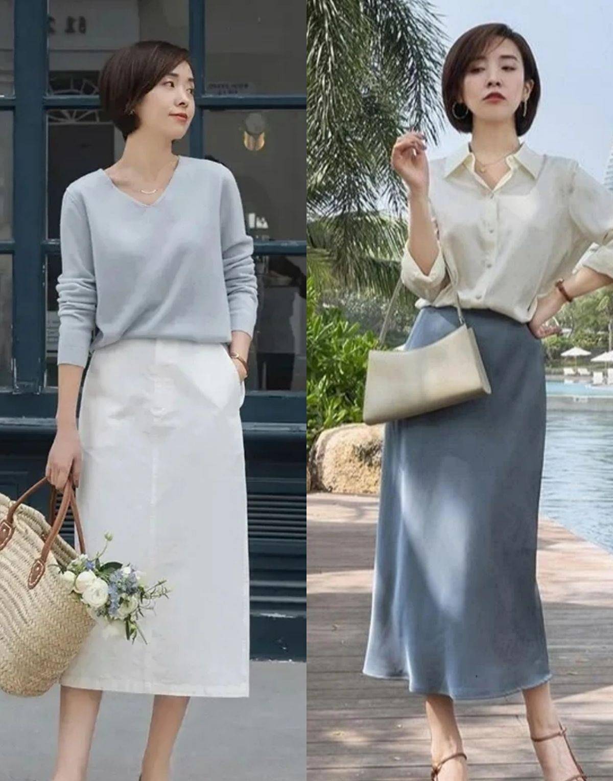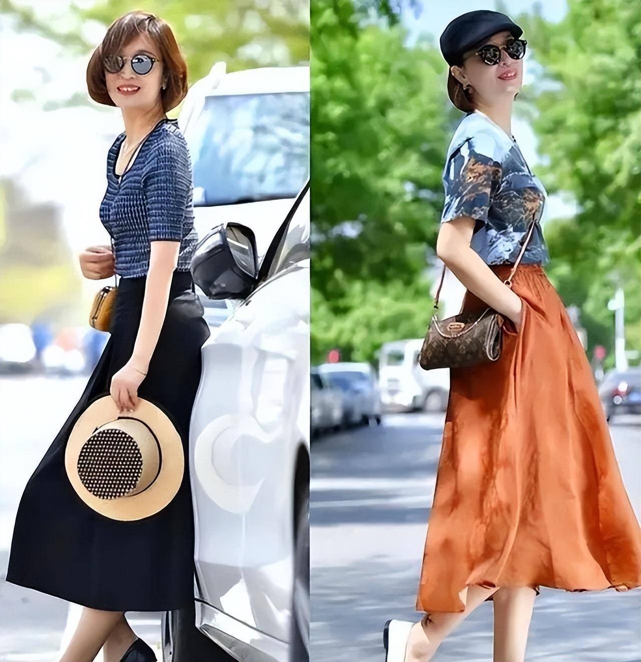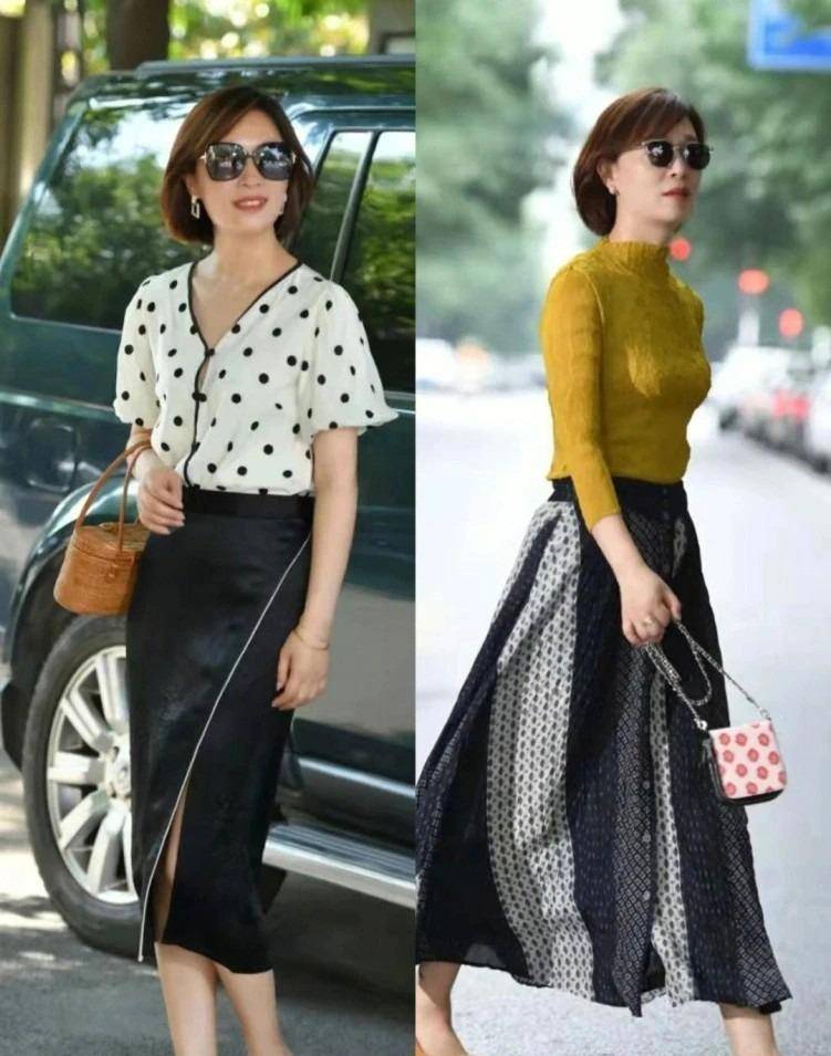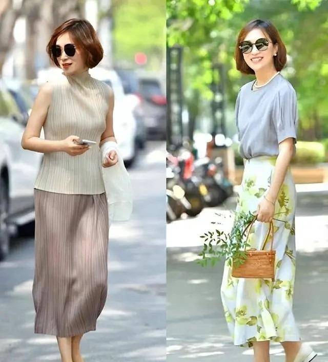 夏季,裙子的使用率高于裤子。选择裙子时,不仅要看面料,还要看长度。裙子的长度要超过膝盖,大部分的身体线条都会被裙子的边缘隐藏起来,毕竟大多数女性在这个年纪想要靠拼身材取胜是非常困难的。