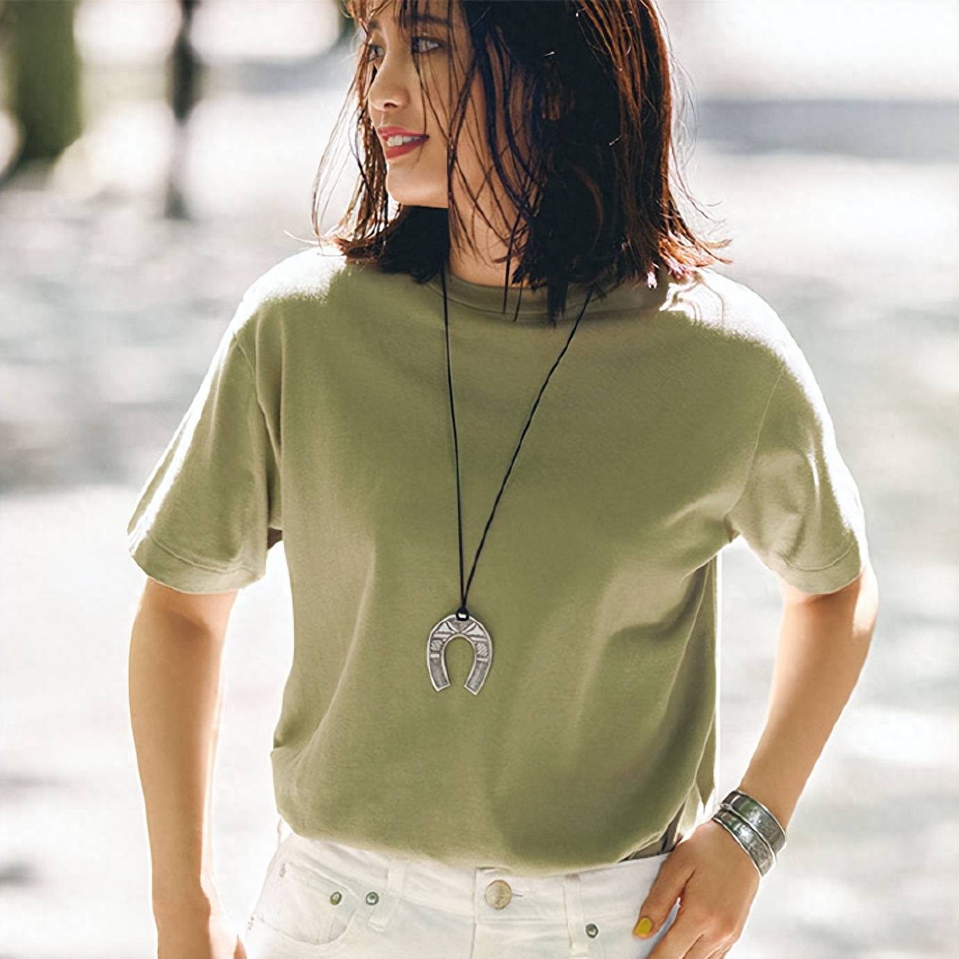 夏天,最常见的T恤都是圆领的,这样就有足够的空间放置项链。项链有很多种类型。在材质上,有金、银、珍珠元素装饰的款式,以适应不同人群的审美和喜好。