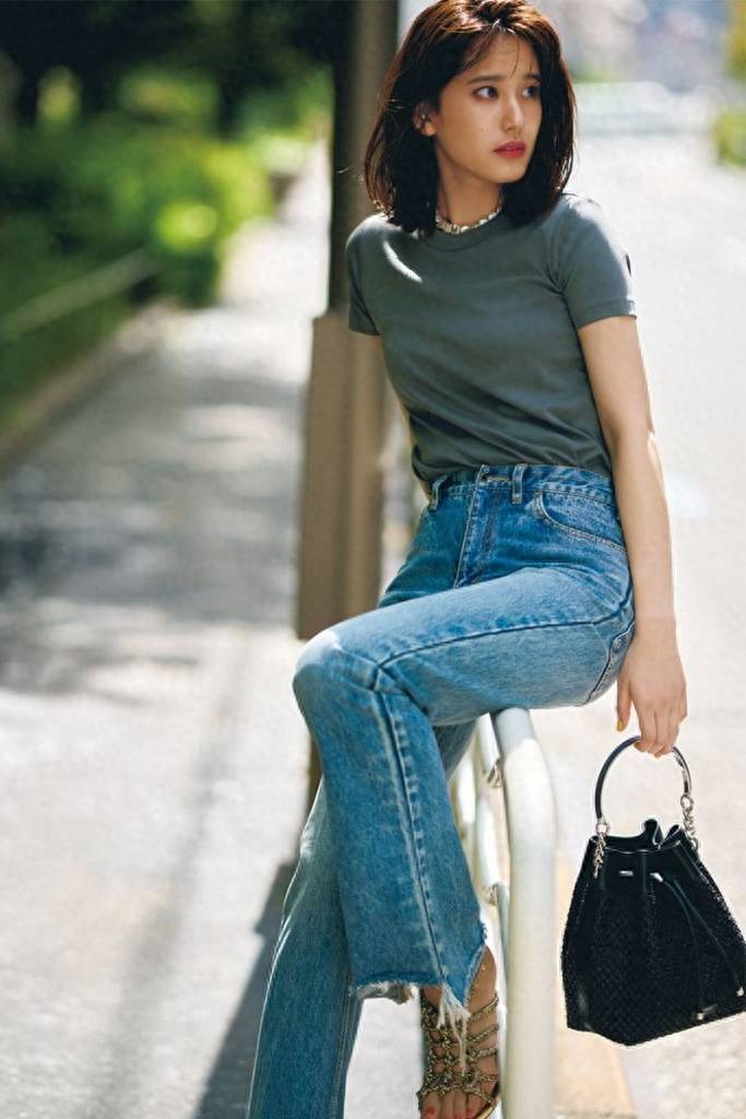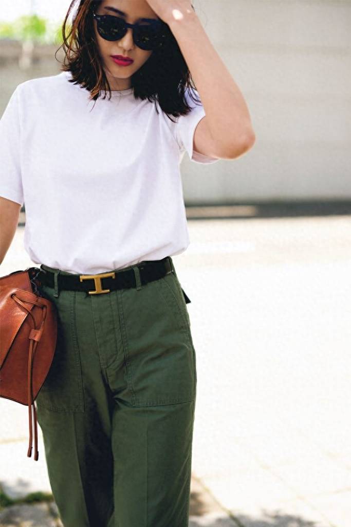 T恤最常用的穿搭技巧就是“衣角”,强调腰线的位置,拉长腿部线条,进而优化整体身材比例,显得更高更显瘦。然而,仅仅将衣服的角塞进裤子的腰部是不够的。腰带可以提升整体造型。