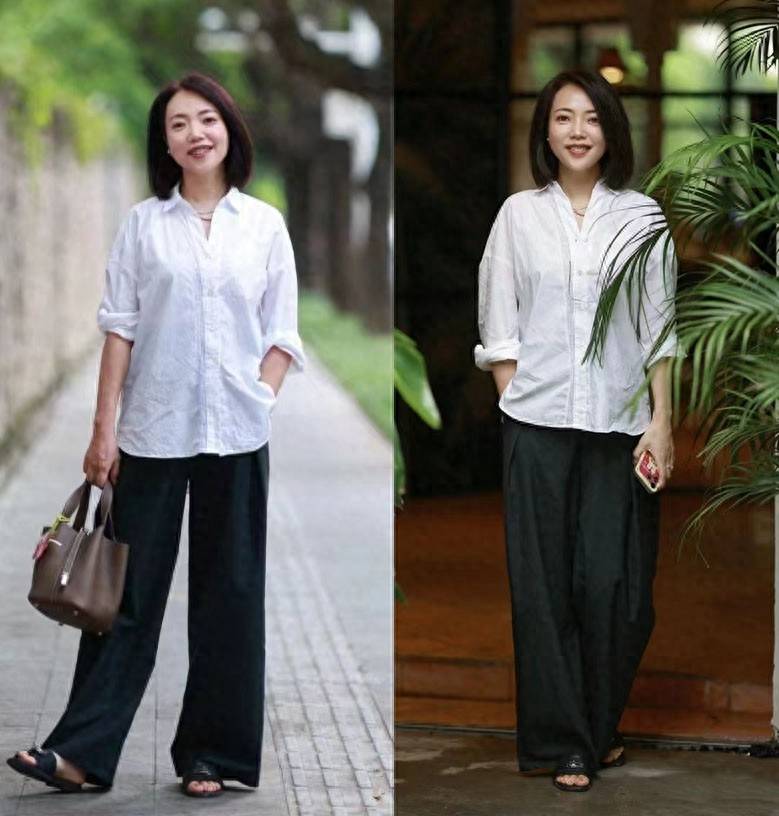 无论四十岁还是六十岁,宽松的下装都容易诠释出大气稳重的感觉。首先是裤子的选择。比如上图中的黑色阔腿裤,无论什么年龄都适合,很容易就展现出特别大方、端庄的一面。
