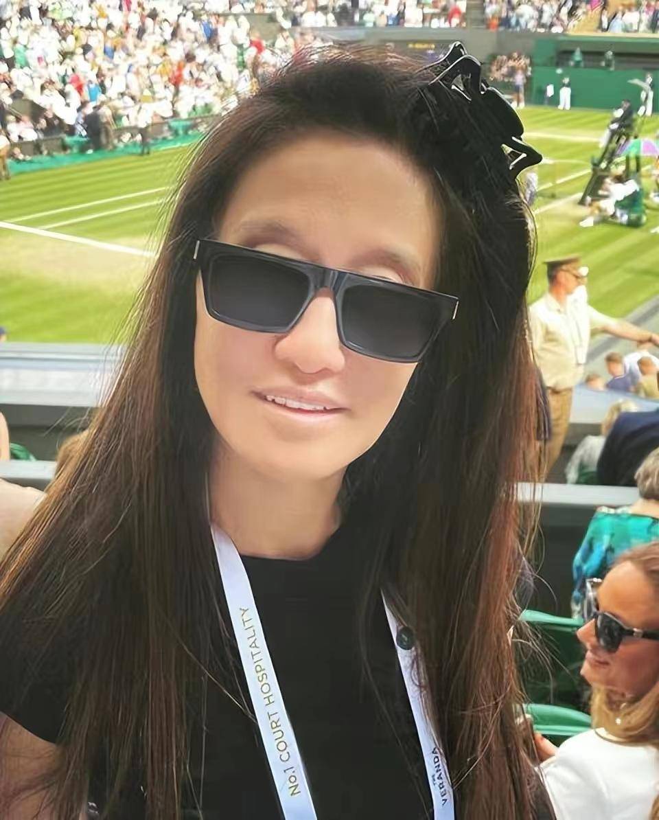 就是这样一个群星璀璨的场合里,74岁的王薇薇靠着出色的时尚衣品跟个性大胆的作风,成功抢镜,成为了温网观众席上最亮眼的存在。