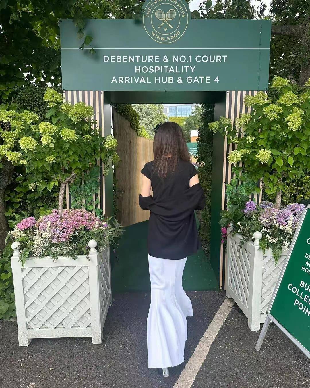 不过这次来看温网,王薇薇却难得低调了一下,放弃了火辣清凉的穿搭,走起了优雅端庄路线。