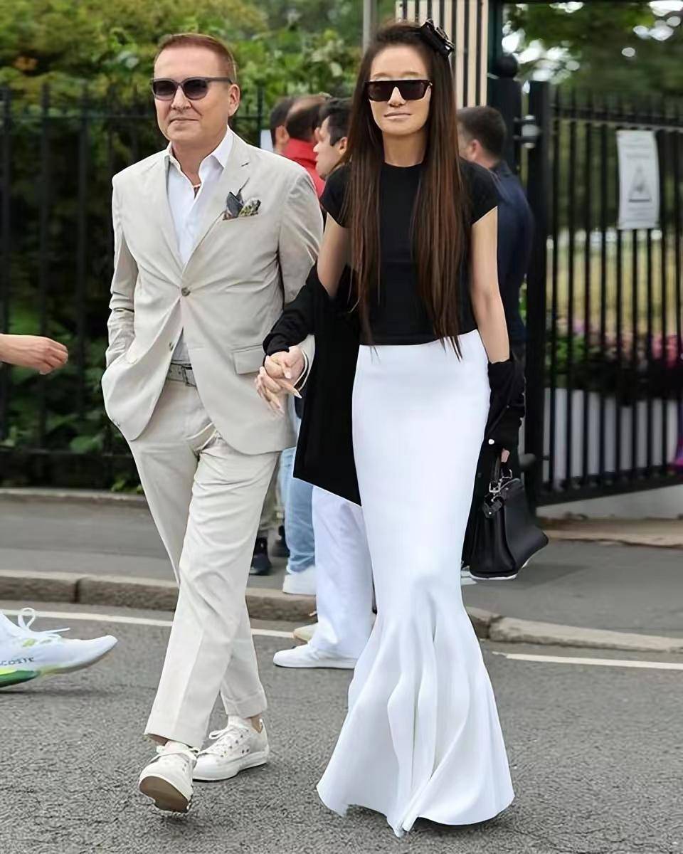 74岁王薇薇抢风头!穿鱼尾裙跟帅哥十指相扣看温网,少女身材真辣