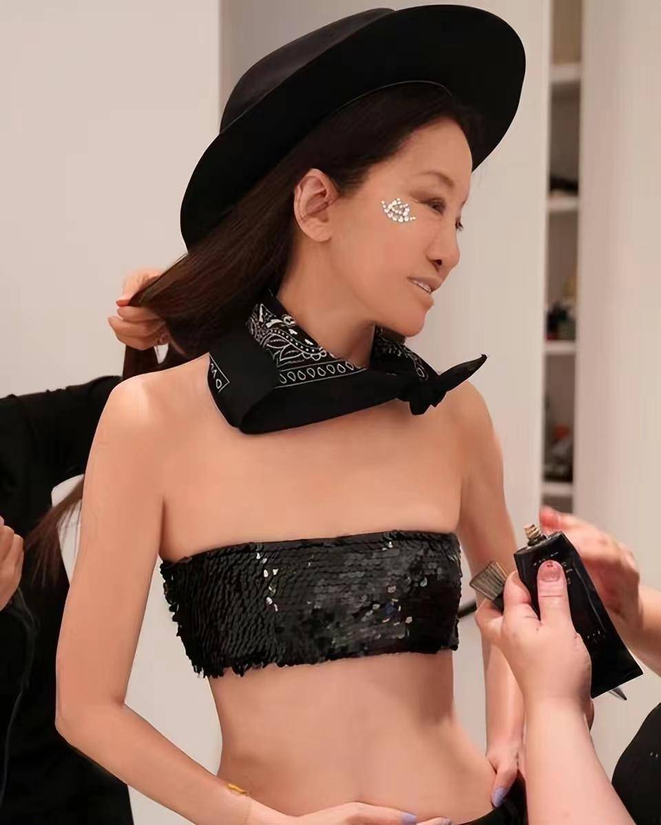 王薇薇的穿衣风格一向大胆,之前在自己74岁的生日宴会上,她的上身就只穿了一件黑色窄布条遮挡。