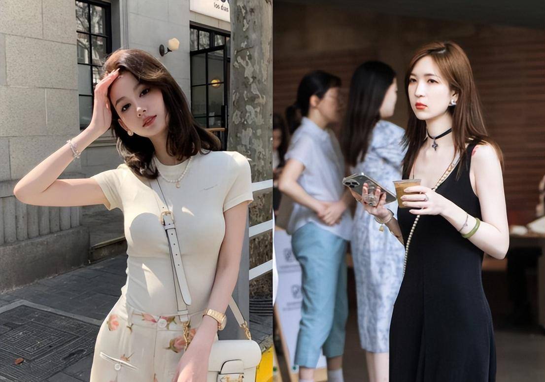 腰部和腹部的衔接设计,收紧腰部,增强曲线美感。她还戴着太阳镜和黑色单肩包,为整体造型增添了奢华感。