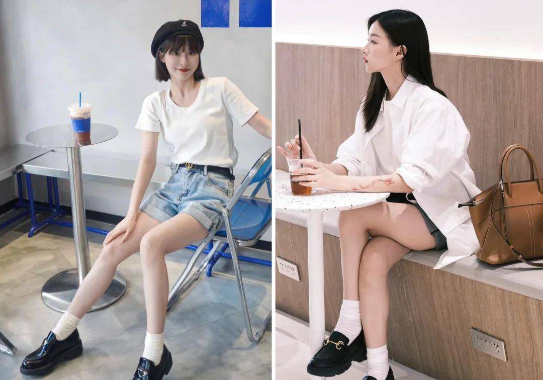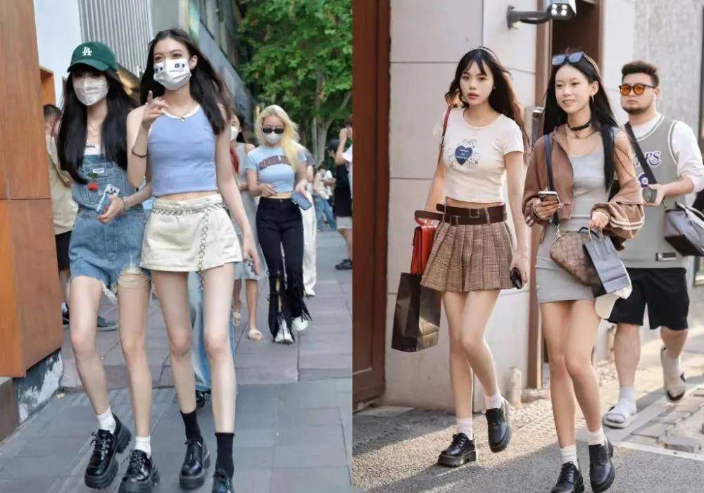 上海安福路上女生穿的福乐鞋,搭配阔腿裤、短裙、T恤,时尚又个性。