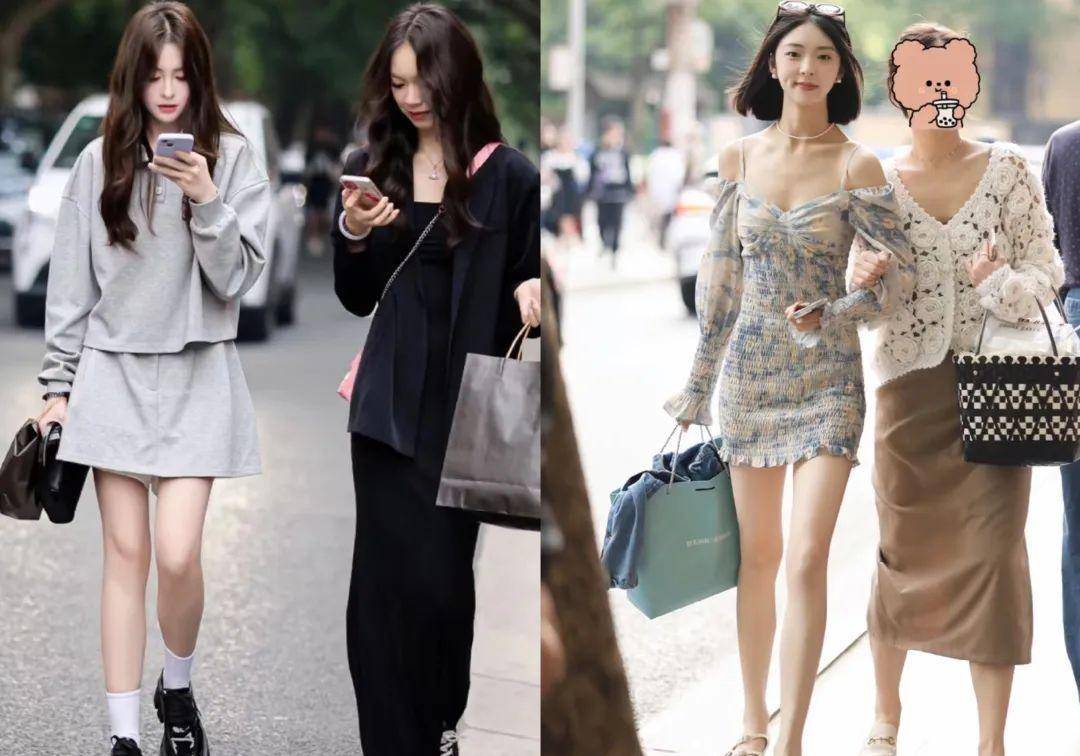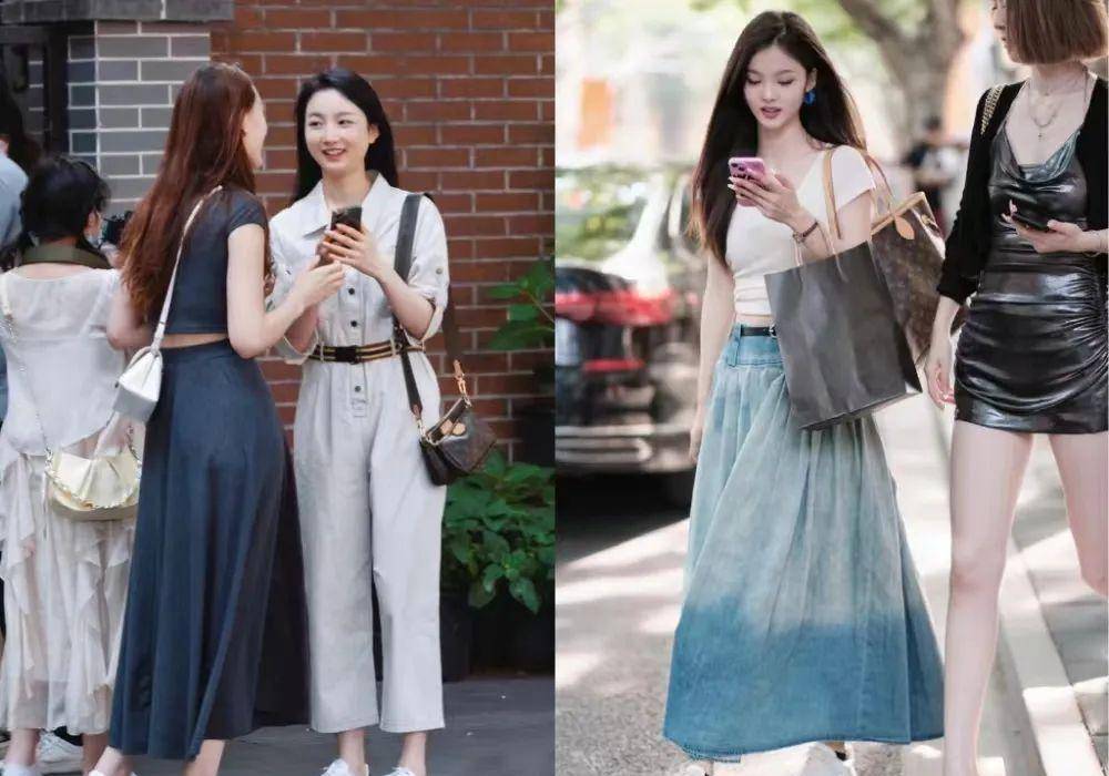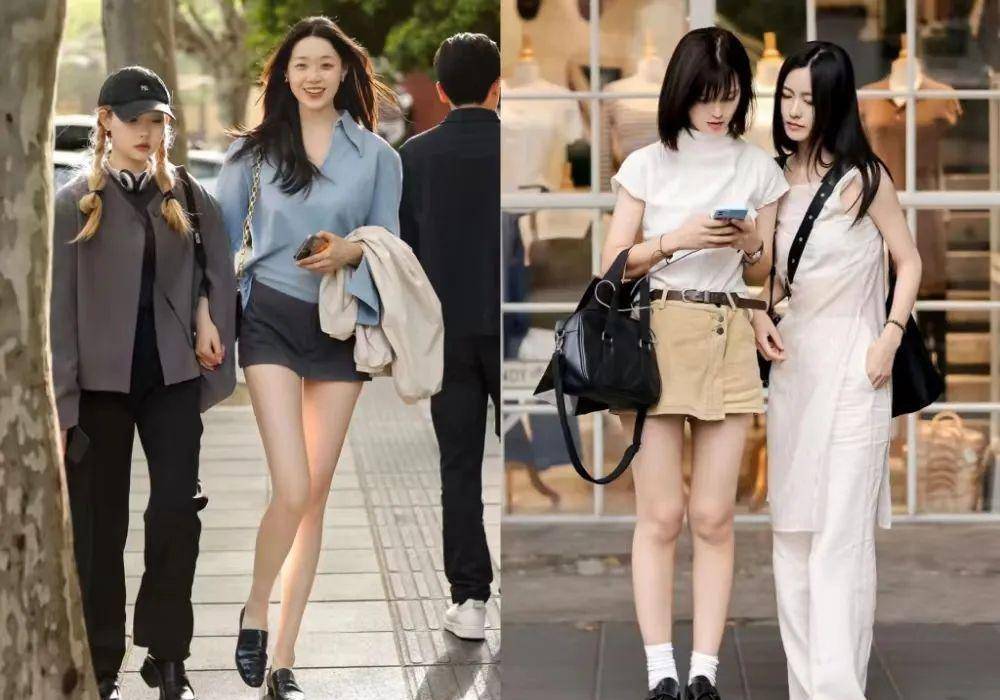 上海安福路,女生穿的小白鞋搭配休闲时尚的宽松裤、裙子、T恤。