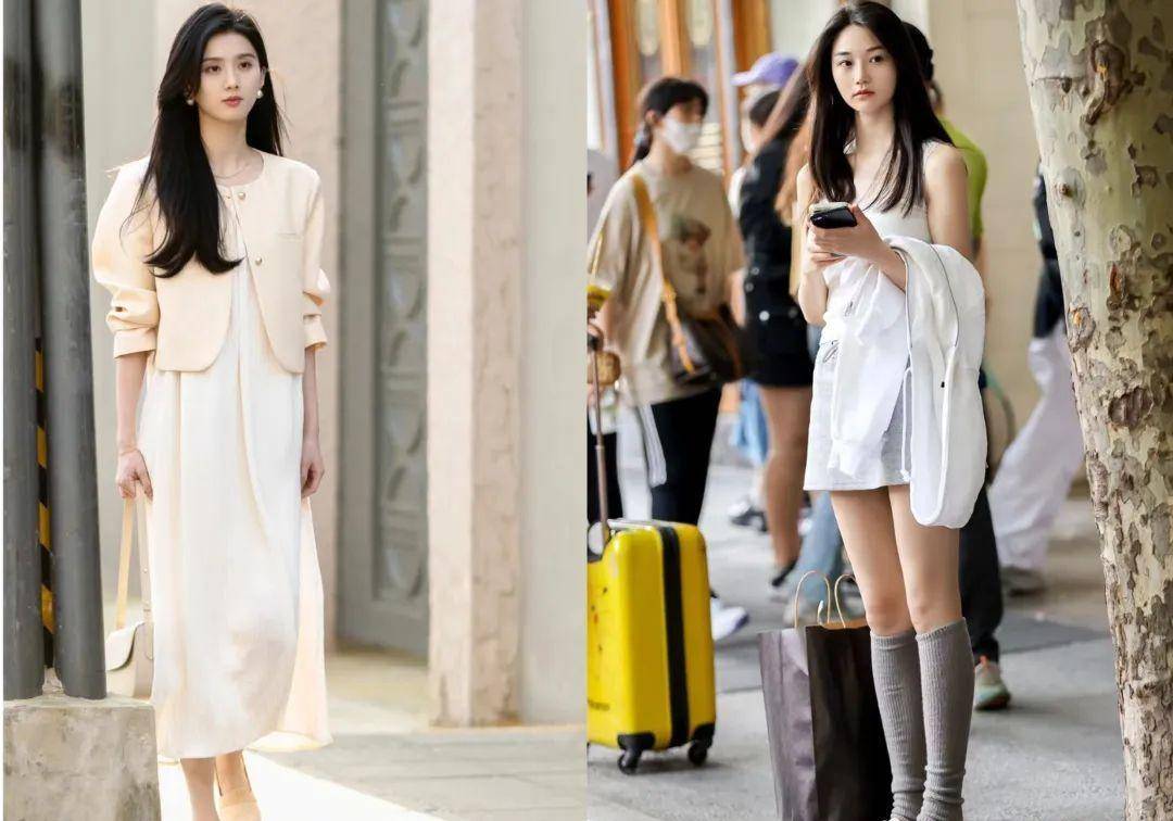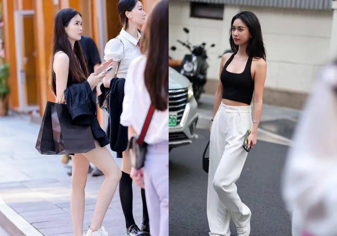 这种搭配可以强调小白鞋的休闲运动感,拉长腿部线条,让身材更加修长。
