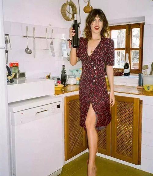小编发现,国外的妹子真的很喜欢这一类型的裙装,这件相比与上一件虽然颜色不同但是风格和款式倒是无差。暗红色的裙摆反而更加的复古,在加上腰间扣子的点缀,整体的风格显得也不单调了。