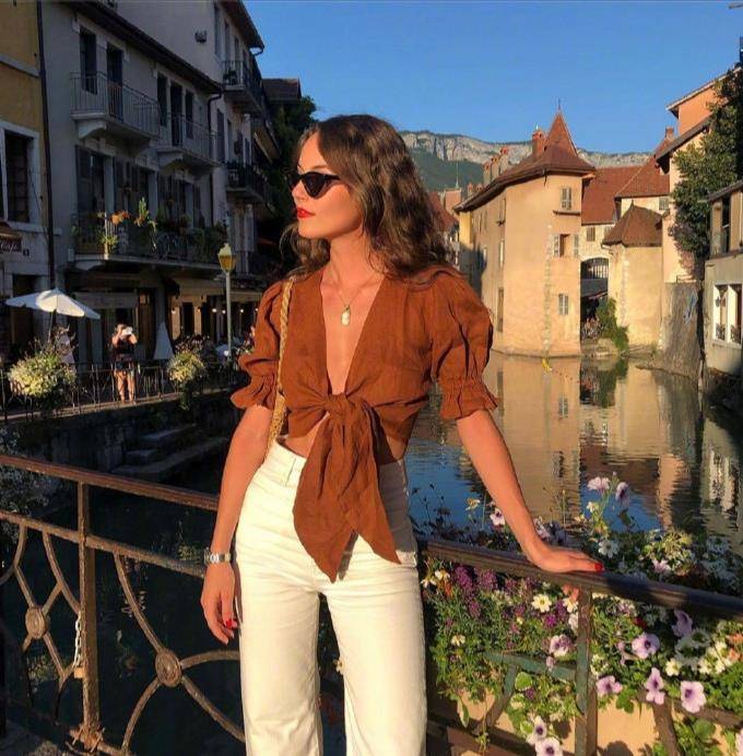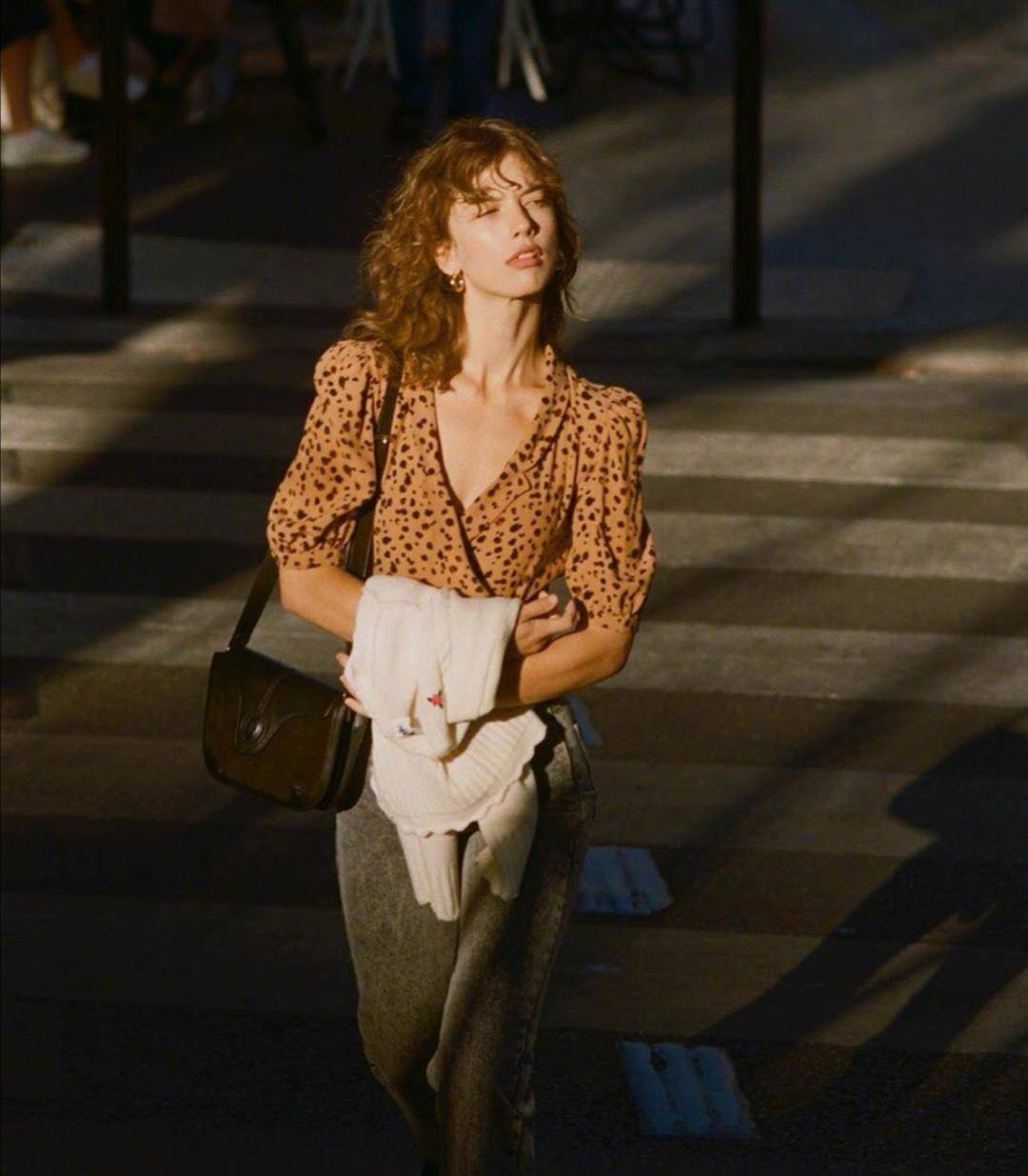 除了碎花的小裙子还有波点的小衬衫,这俩种元素在法式风格中都是比较经典比较常见的。因为它不仅仅把法式的浪漫与时尚展示的淋漓尽致,还有俏皮可爱也完全不在话下。长牛仔裤搭配短上衣,是法式穿搭中比较常见的组合方法。但要注意的是,短款的上衣千万不要选择宽松的版型,而是要有很明显的收腰效果才好。这样才符合法式的穿搭风格,才能很好的展现出时尚小女人的感觉。小仙女们都可以试一试。