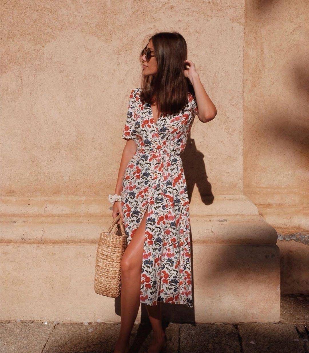 碎花在法式穿搭中占有极高的比例,超级复古还有浓郁的文艺气息。像这位小姐姐穿的这一款碎花长裙就非常的时尚迷人。大大的v领露出迷人的锁骨,还有侧边的时尚,纤细的双腿展露无疑,看着随意慵懒,但是少不了的小时尚。