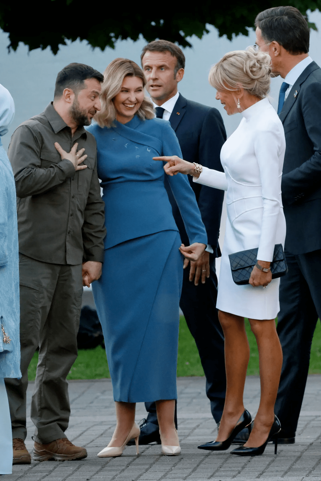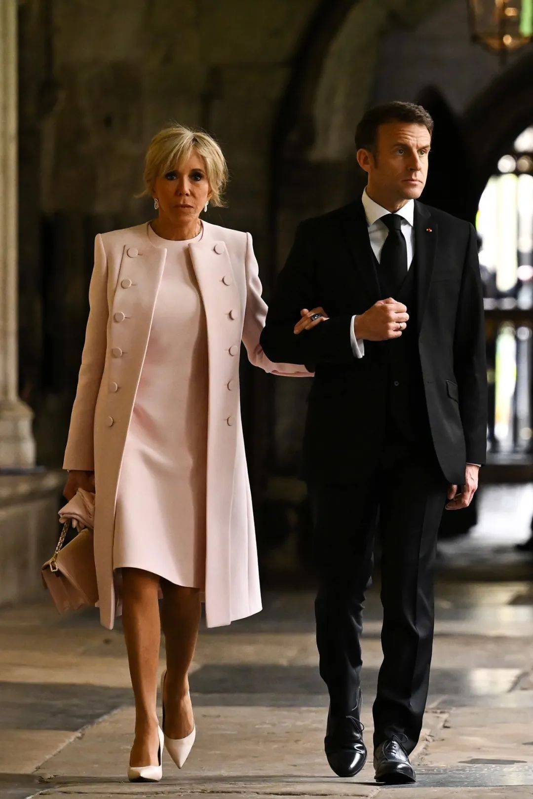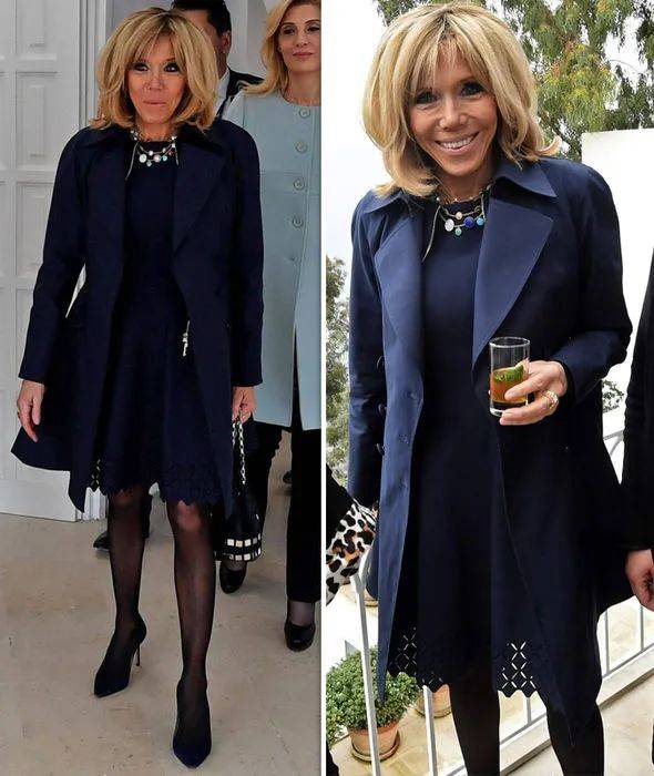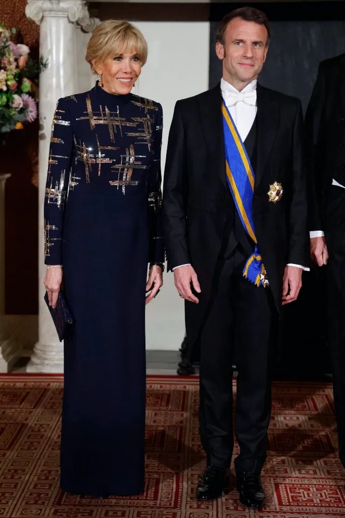 穿情侣色也早已是马克龙夫妇的传统艺能,他俩一起正式亮相,基本上都会在穿衣上打配合,下面这个深蓝装束就非常经典。