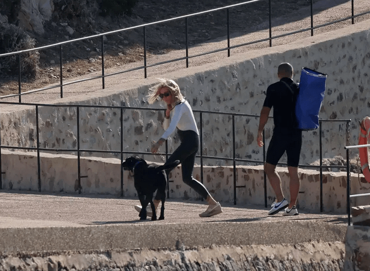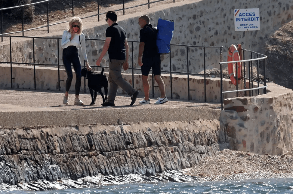 媒体抓拍到了布丽吉特出门遛爱犬Nemo的照片,她身边只有随从人员,不见马克龙的影子,总统大概率还在补觉。