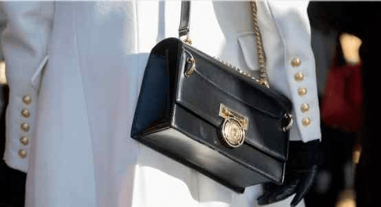 白色大衣搭配的牛皮小包也来自Balmain,圆圆的包扣和身上的纽扣遥相呼应,也是比较年轻的款式。